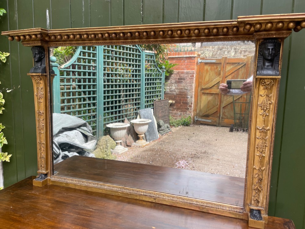 A stylish early C19th Regency period gilt-wood framed overmantel mirror in the fashionable ‘Retour D’Egypte’ taste of the era.