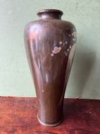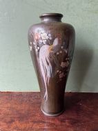 Late C19th Japanese Meiji period mixed metal inlaid bronze vase.