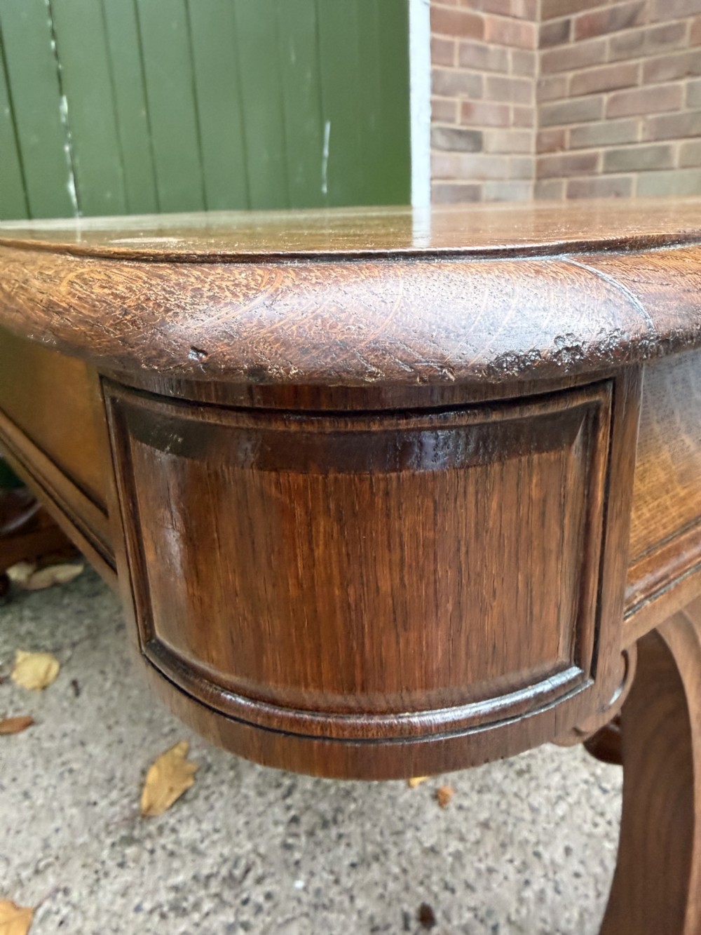 The figured oak top with minor marks and stains commensurate with age , use and purpose. The whole having achieved a mellow colour and patina, has been sympathetically cleaned and waxed in our workshops.