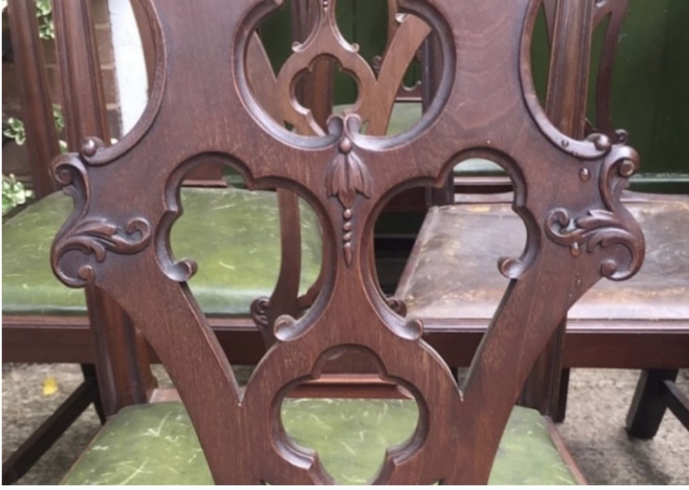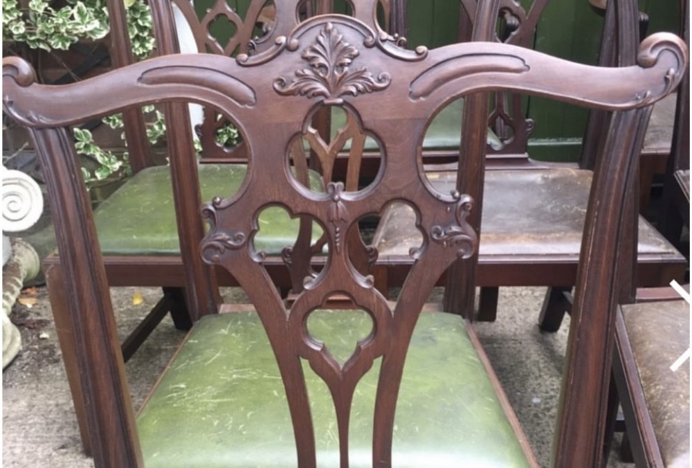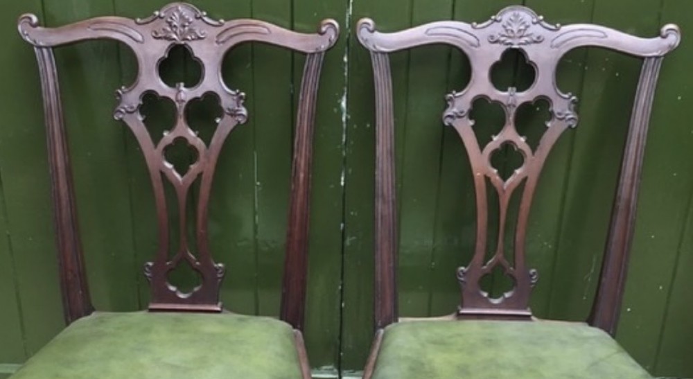 *NB from the same local property we purchased a large Georgian mahogany triple pillar dining table which was used in conjunction with this set of chairs to form a very elegant dining suite . Details of which are on our website or available on request.