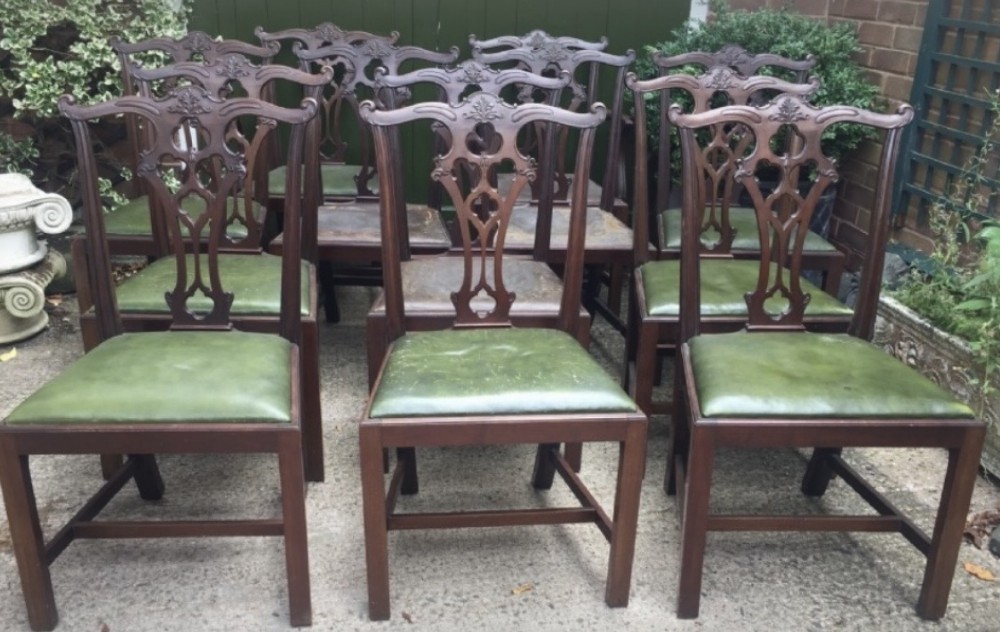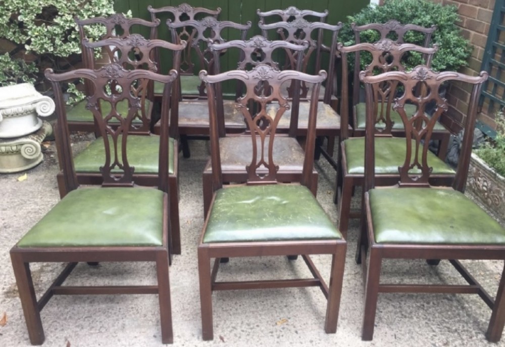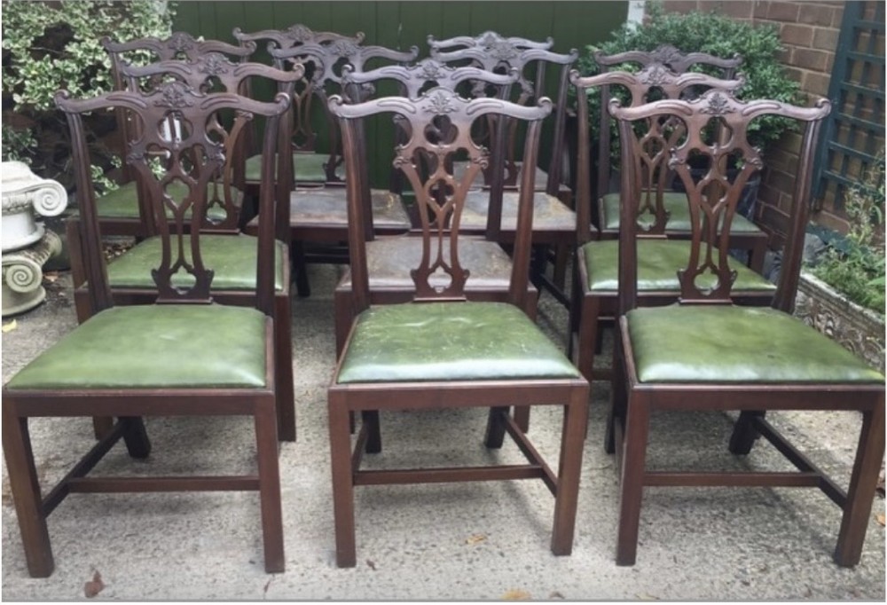 A scarce multiple ‘long’ set of 12 matching chairs , of classic C18th Chippendale period design of practical scale and ergonomic design..