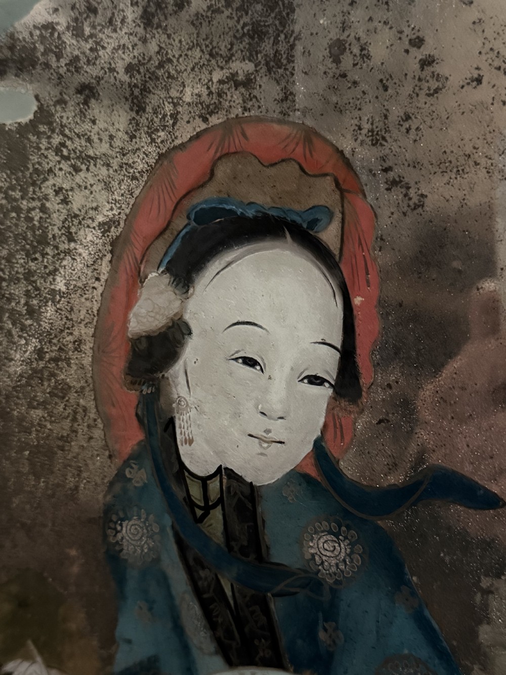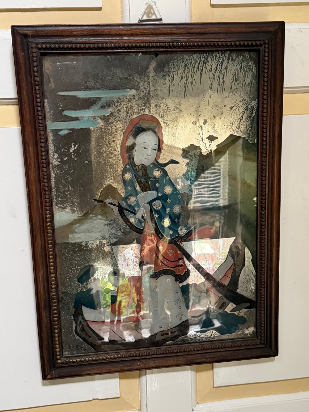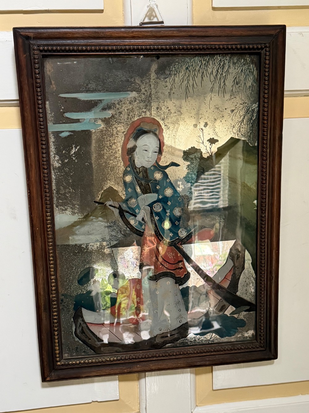 Early C19th Chinese Export trade reverse painted mirror-glass picture