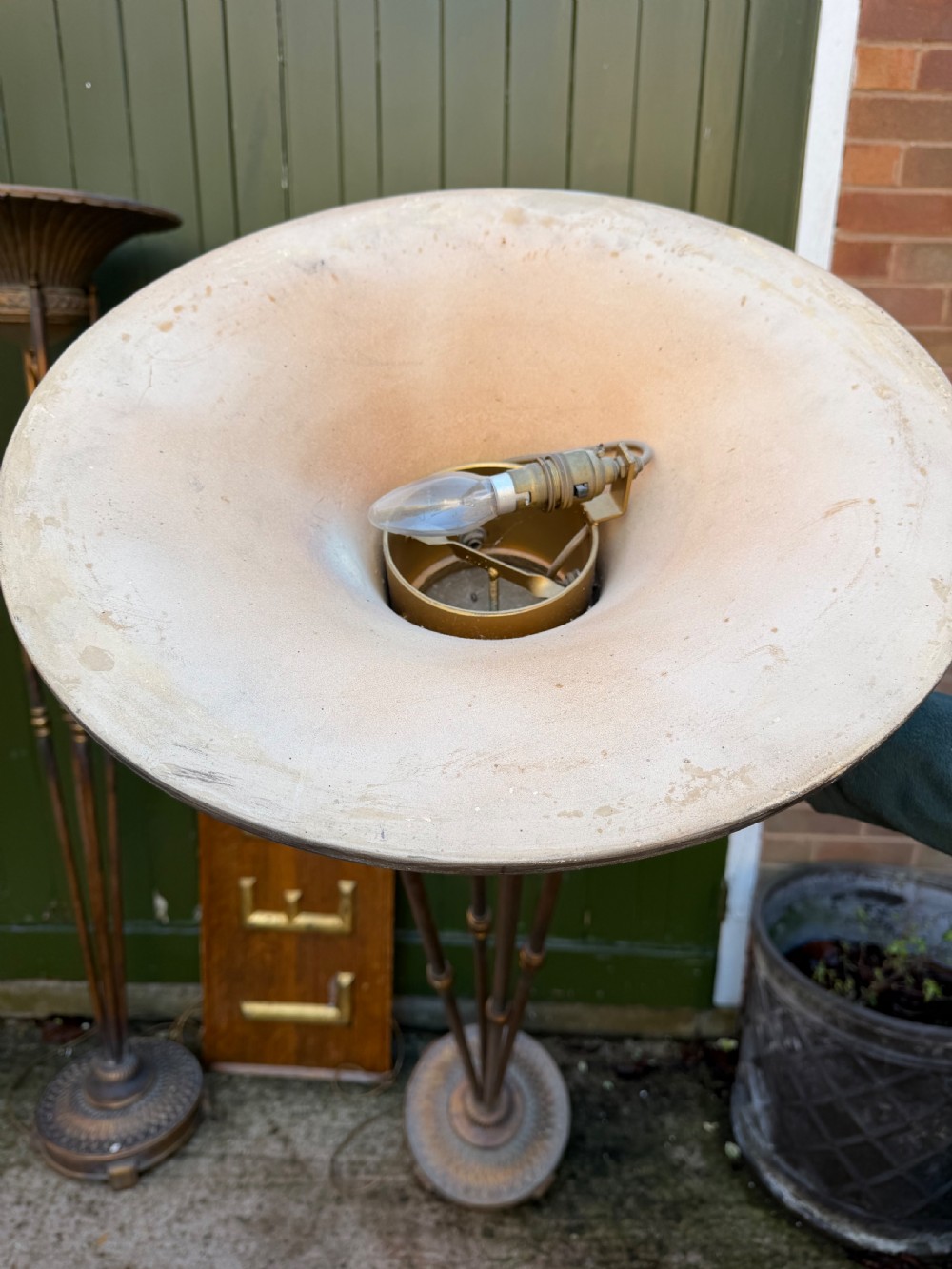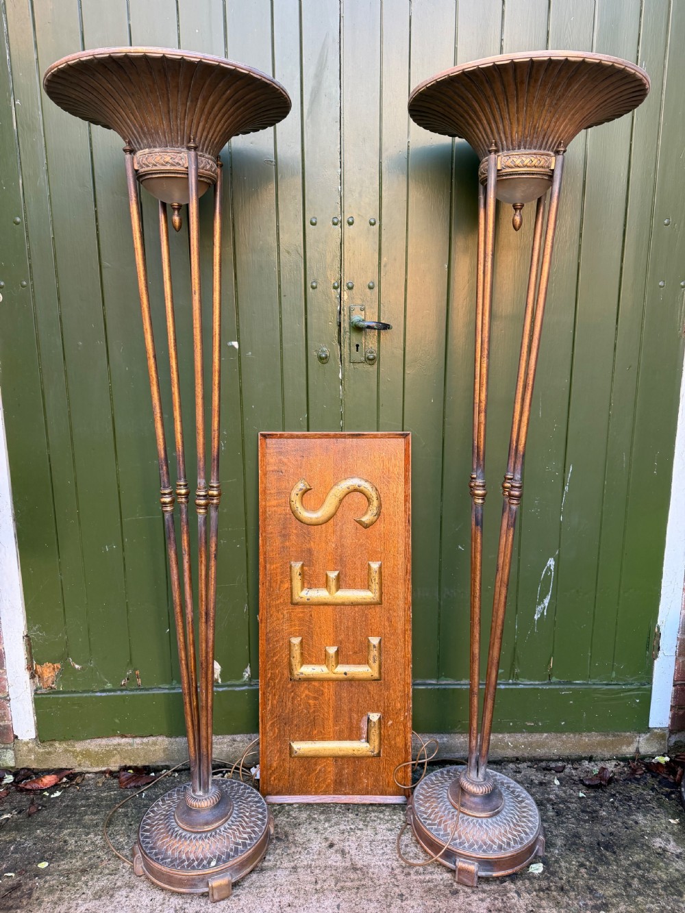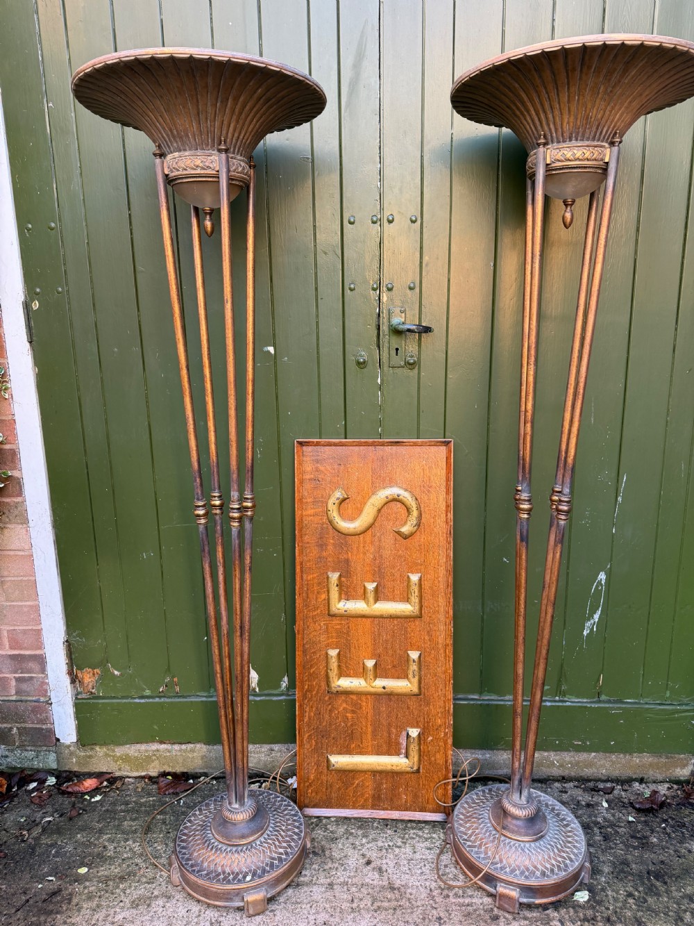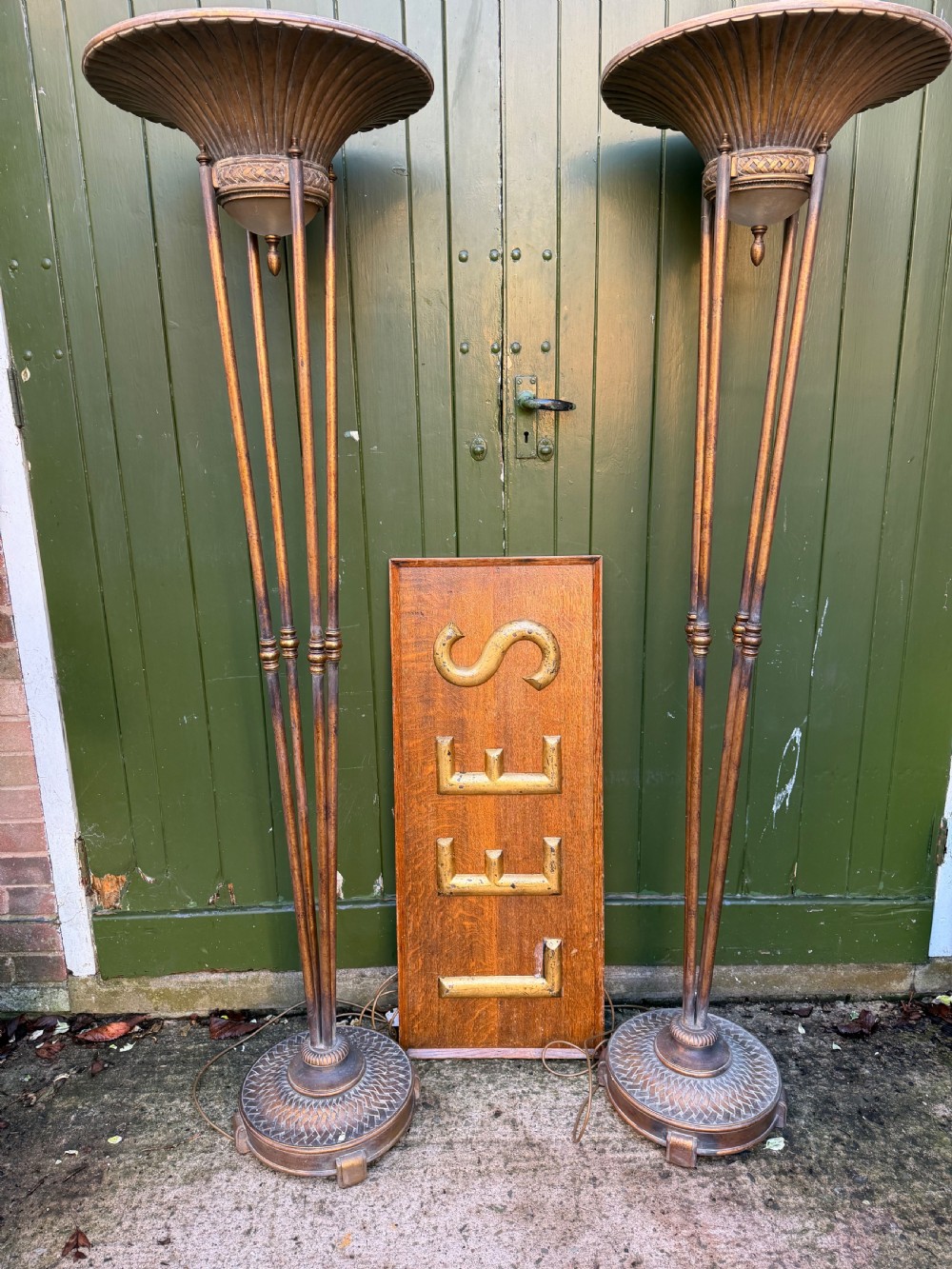 Pair of early C20th gilt uplighters of ‘Hollywood Regency’ or ‘Odeonesque’ design.