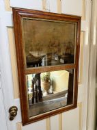 Interesting and rare early C19th maple-framed divided 2-section mirror with a reverse glass print above depicting an American and British naval engagement.