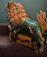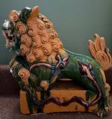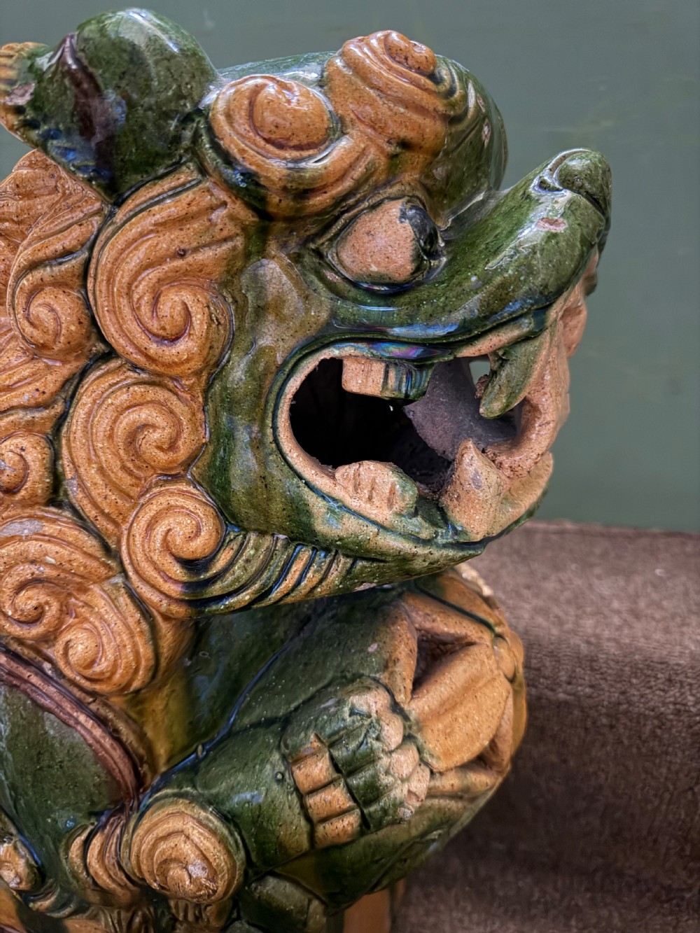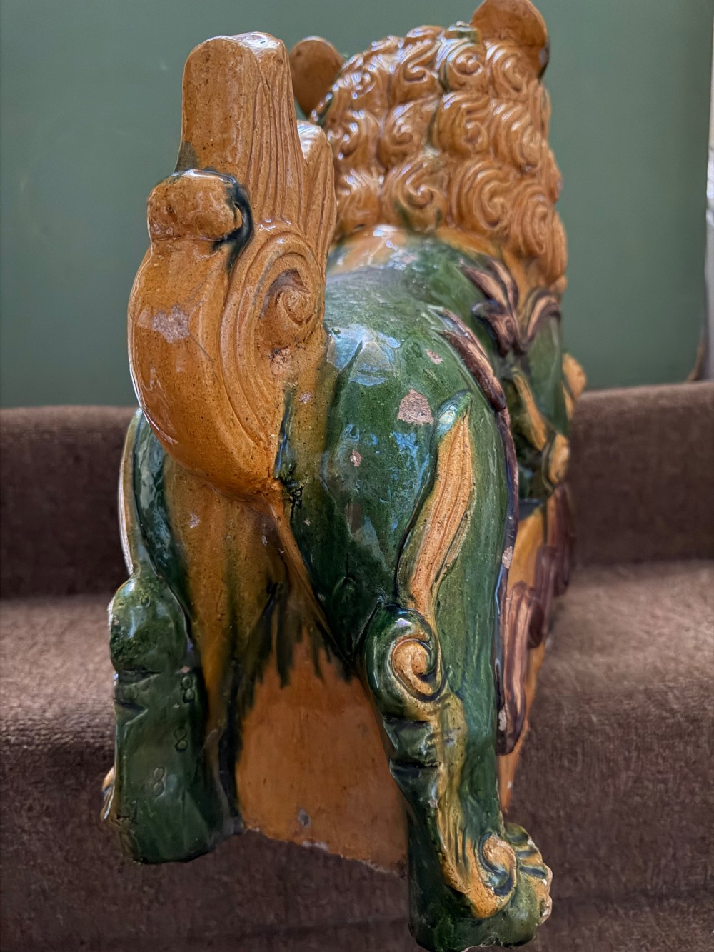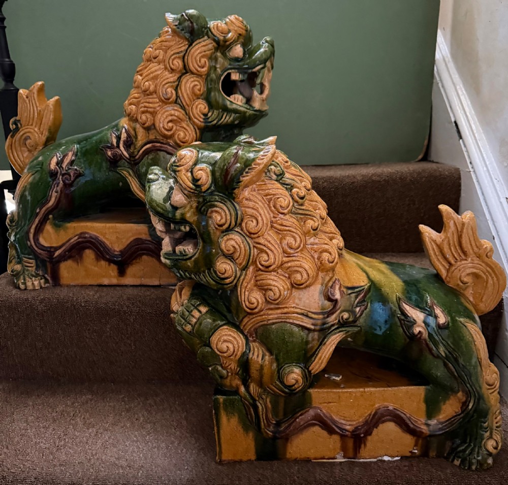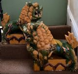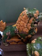 Pair of large-scale decorative early C20th Chinese Sancai glazed pottery ‘Foo Dogs’ .
