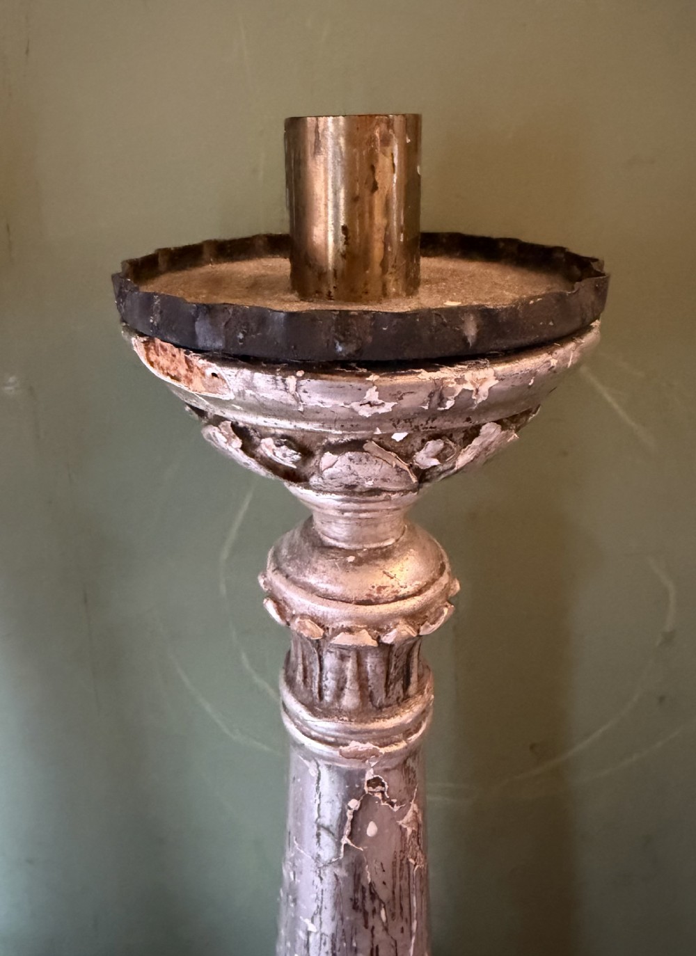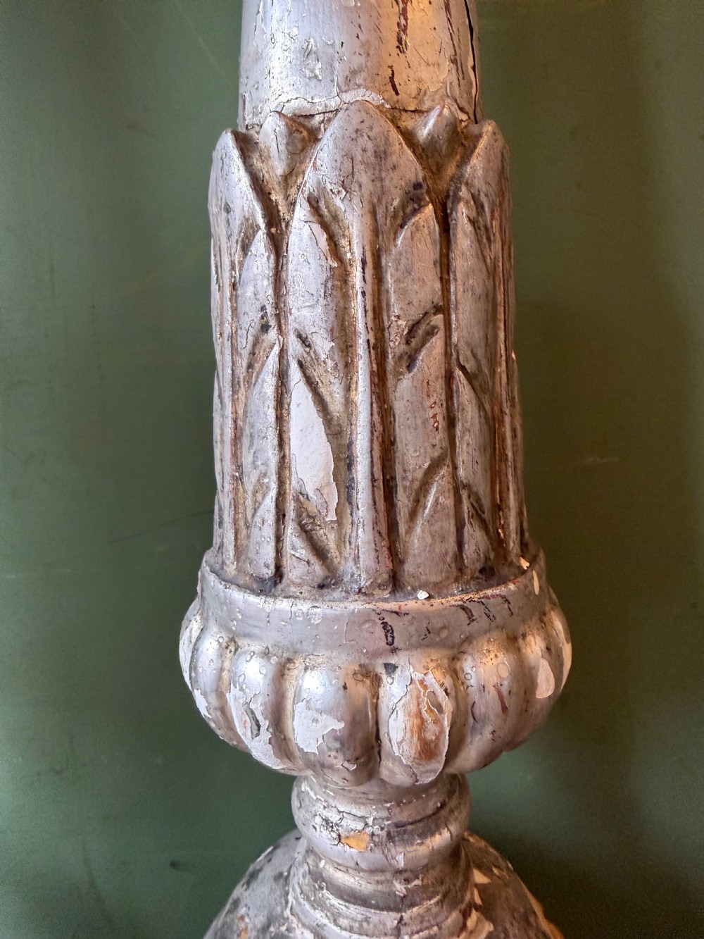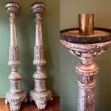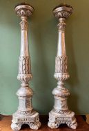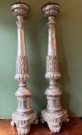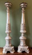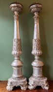Pair of late C18th / early C19th Italian silvered carved wooden altar-style candle-sticks.