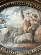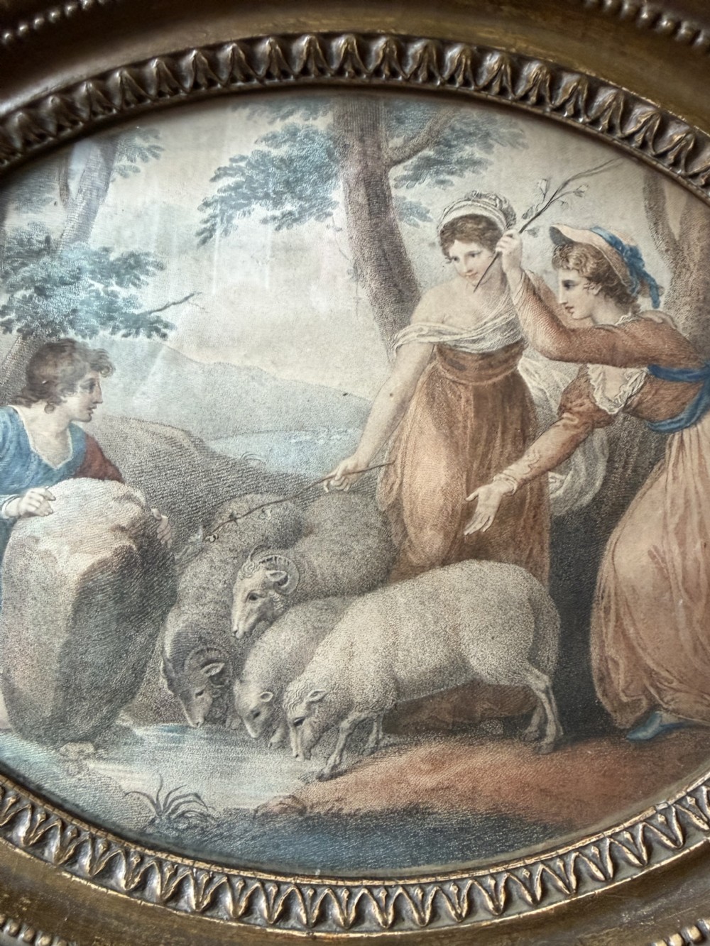 pair of early c19th oval giltwood framed coloured engravings in the manner of francesco bartolozzi