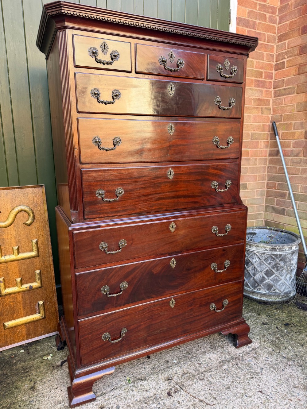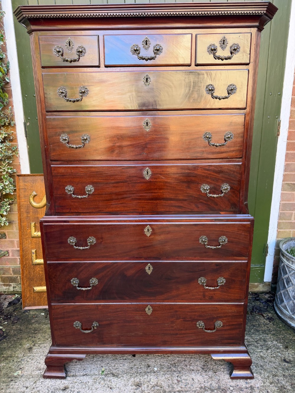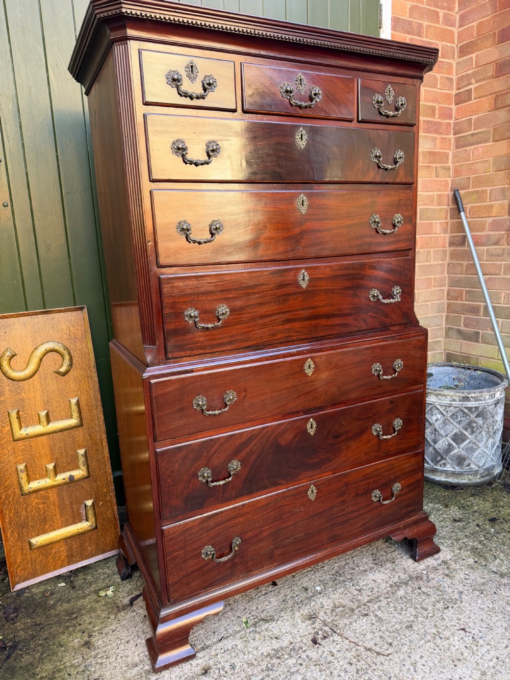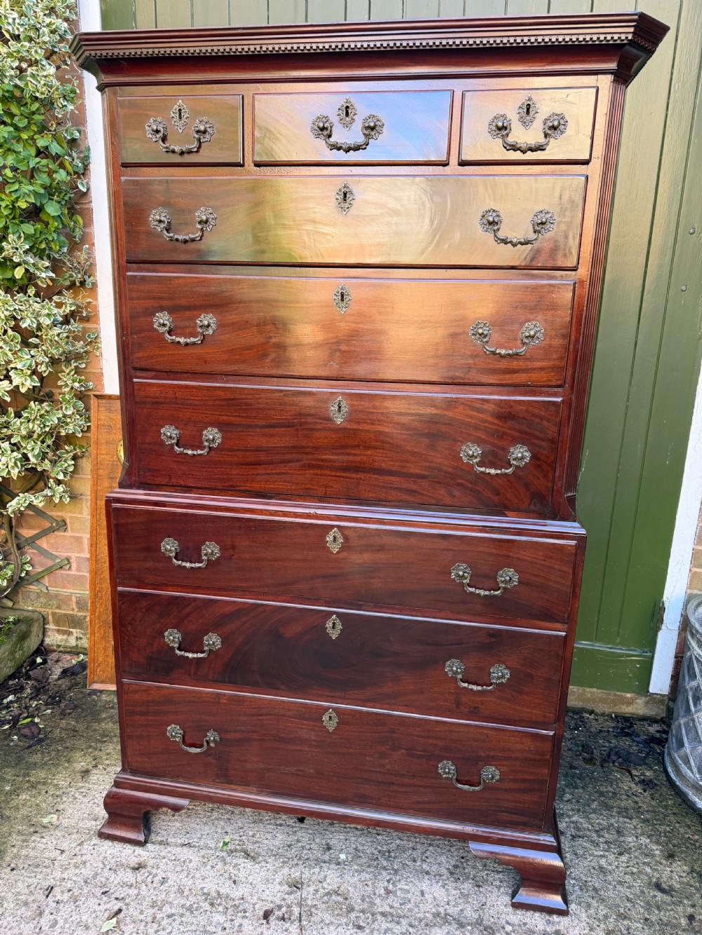 Mid C18th George II Chippendale period ‘red walnut’ chest-on-chest or tall-boy .