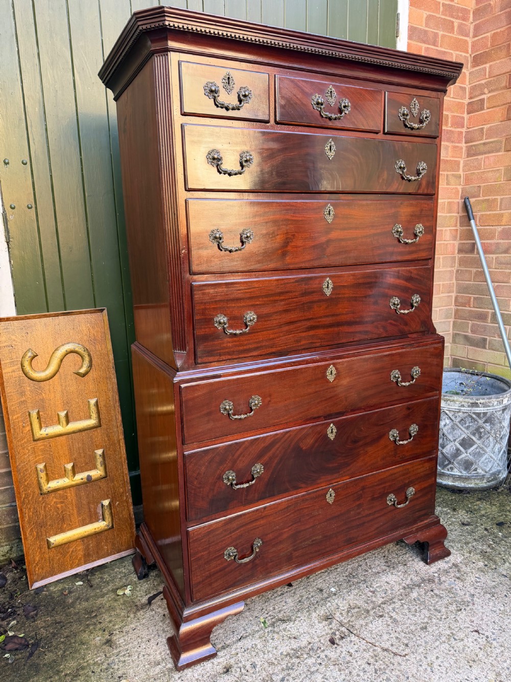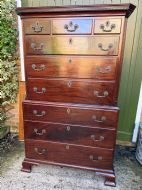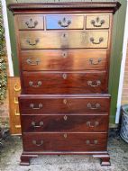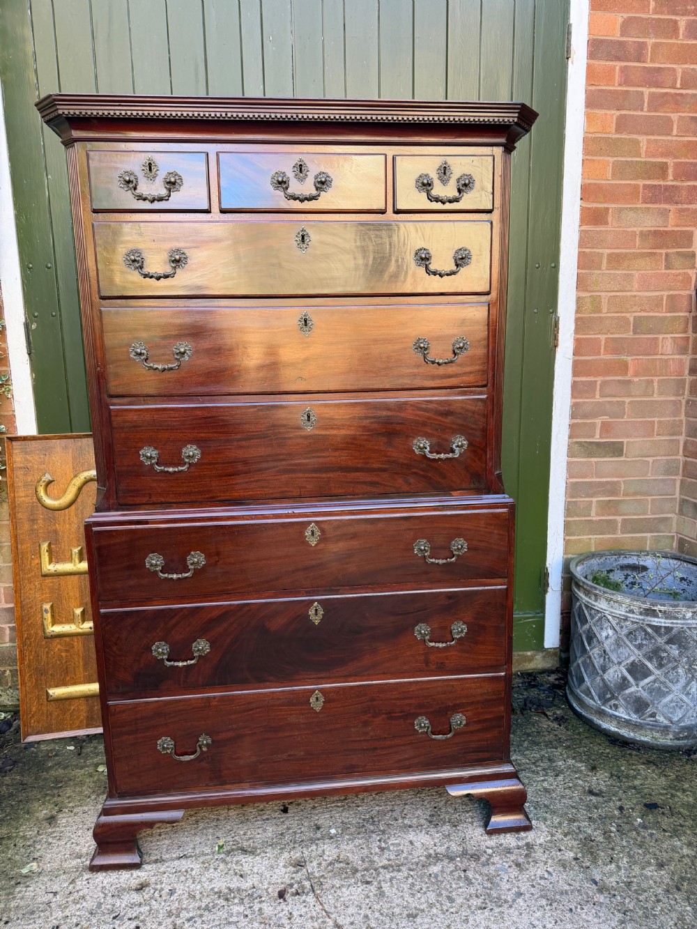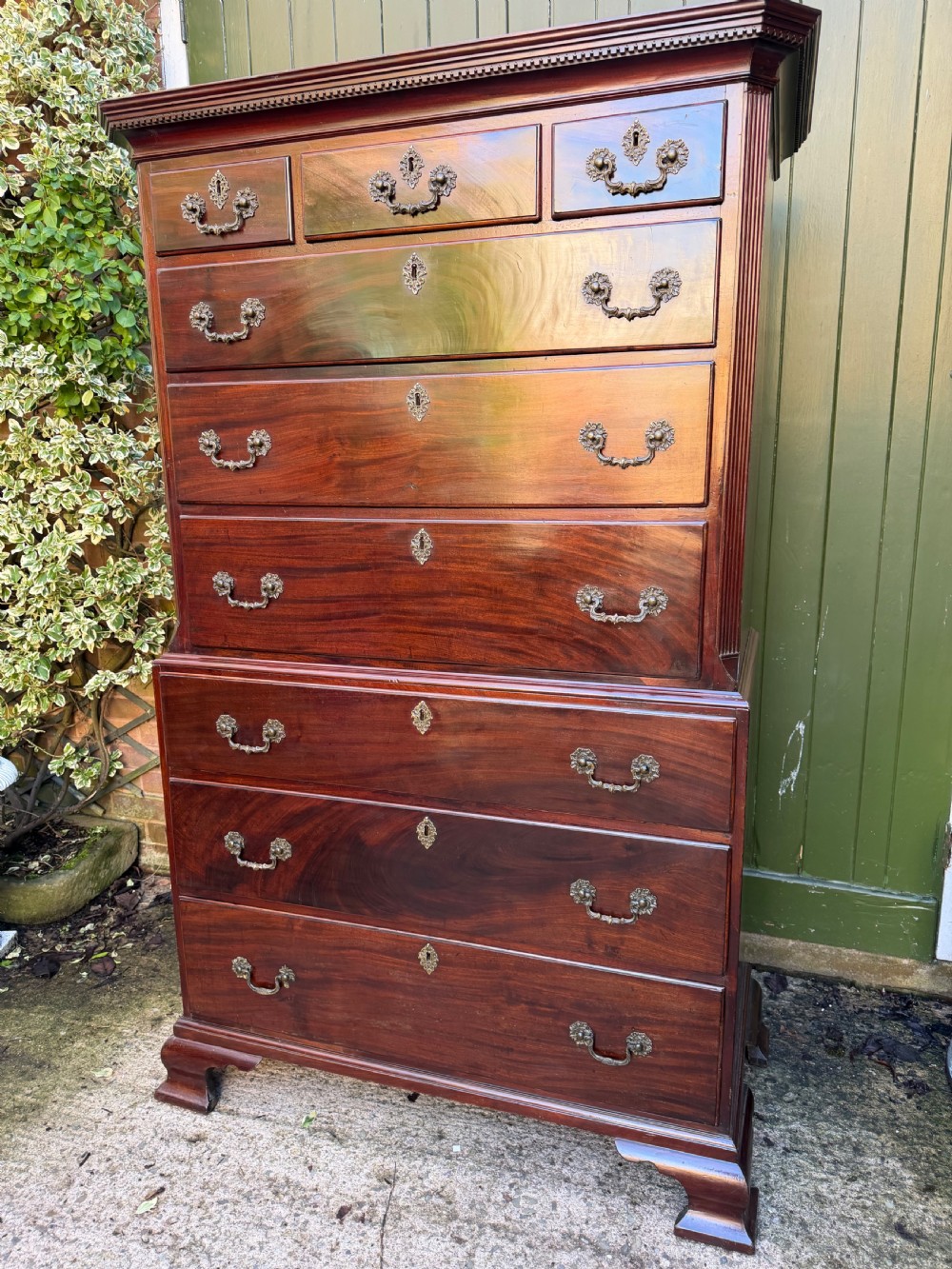 A bold mid C18th chest-on-chest of great presence and style, offering capacious storage. Constructed in two sections for ease of movement and transportation.
