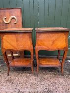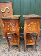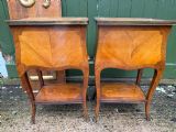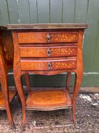 Smart pair of late C19th / early C20th French rosewood , satinwood and kingwood marquetry tables in the C18th Louis XVI period taste .