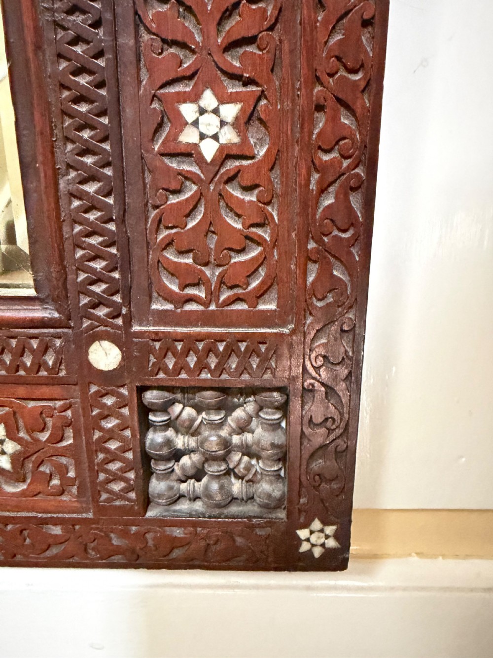 late c19th levantine carved frame mirror with nacreshell inlay and mashrabiya turned panels