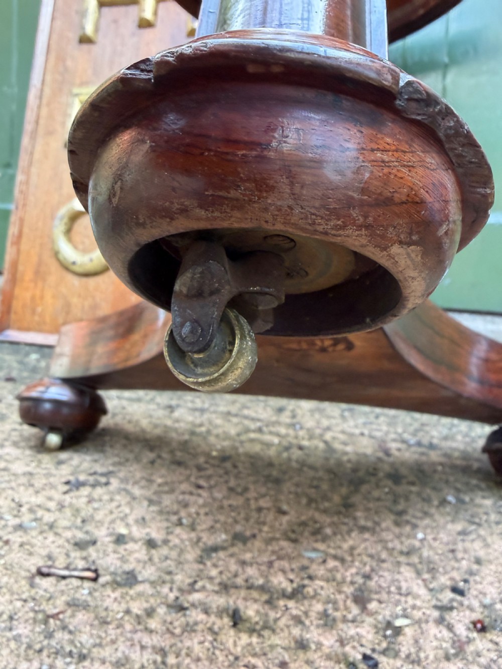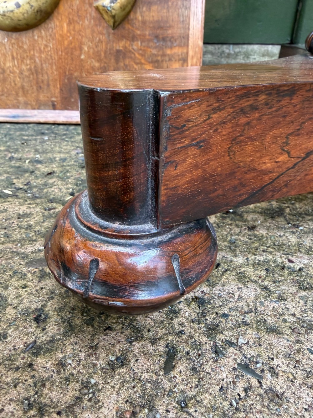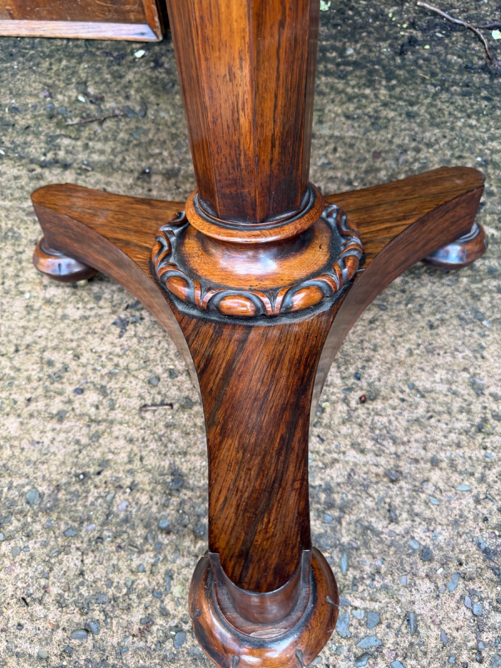 In excellent original condition, the figured rosewood top having achieved a pleasing lightly sun-faded mellow colour and bearing a slight ‘shadow’ probably from the positioning of a flower vase .