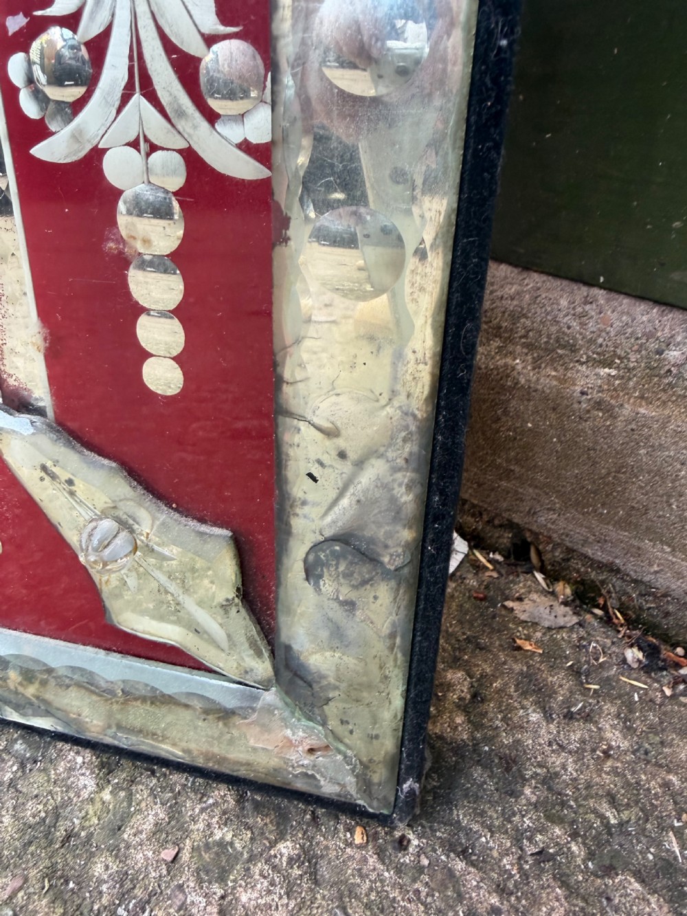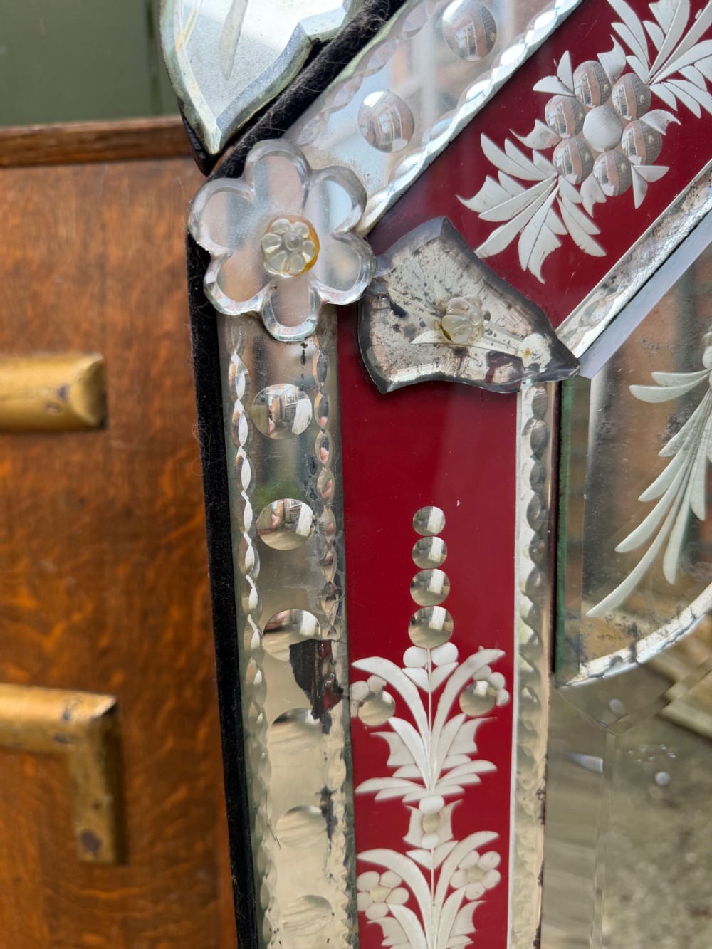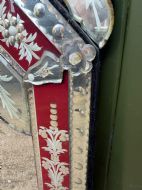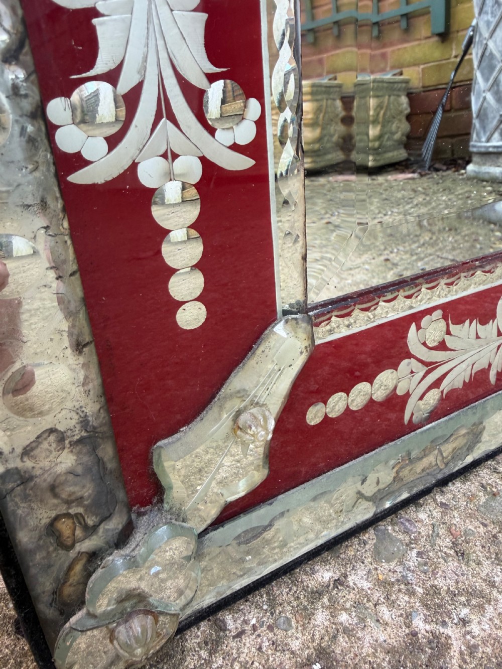 Late C19th / early C20th Italian Venetian cut and etched glass framed mirror with a ruby red border.