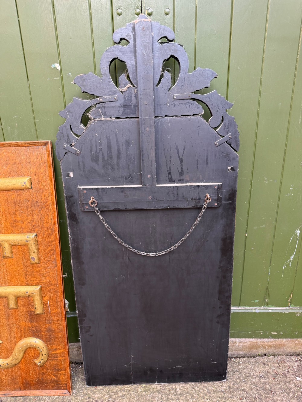 In good original condition with some atmospheric degradation to the glass edges and border . One minor decorative element missing to the bottom rhs . The verso fitted with the original solid backboard and a hanging chain .