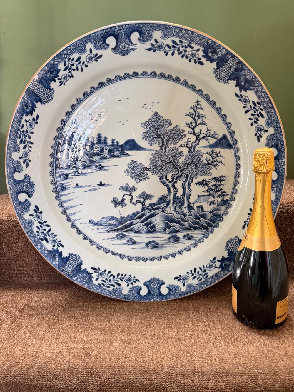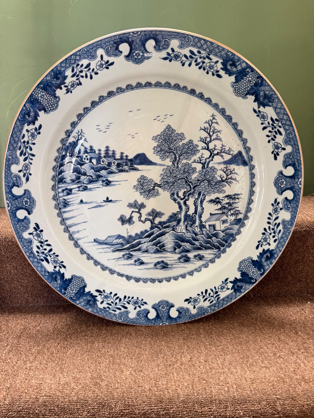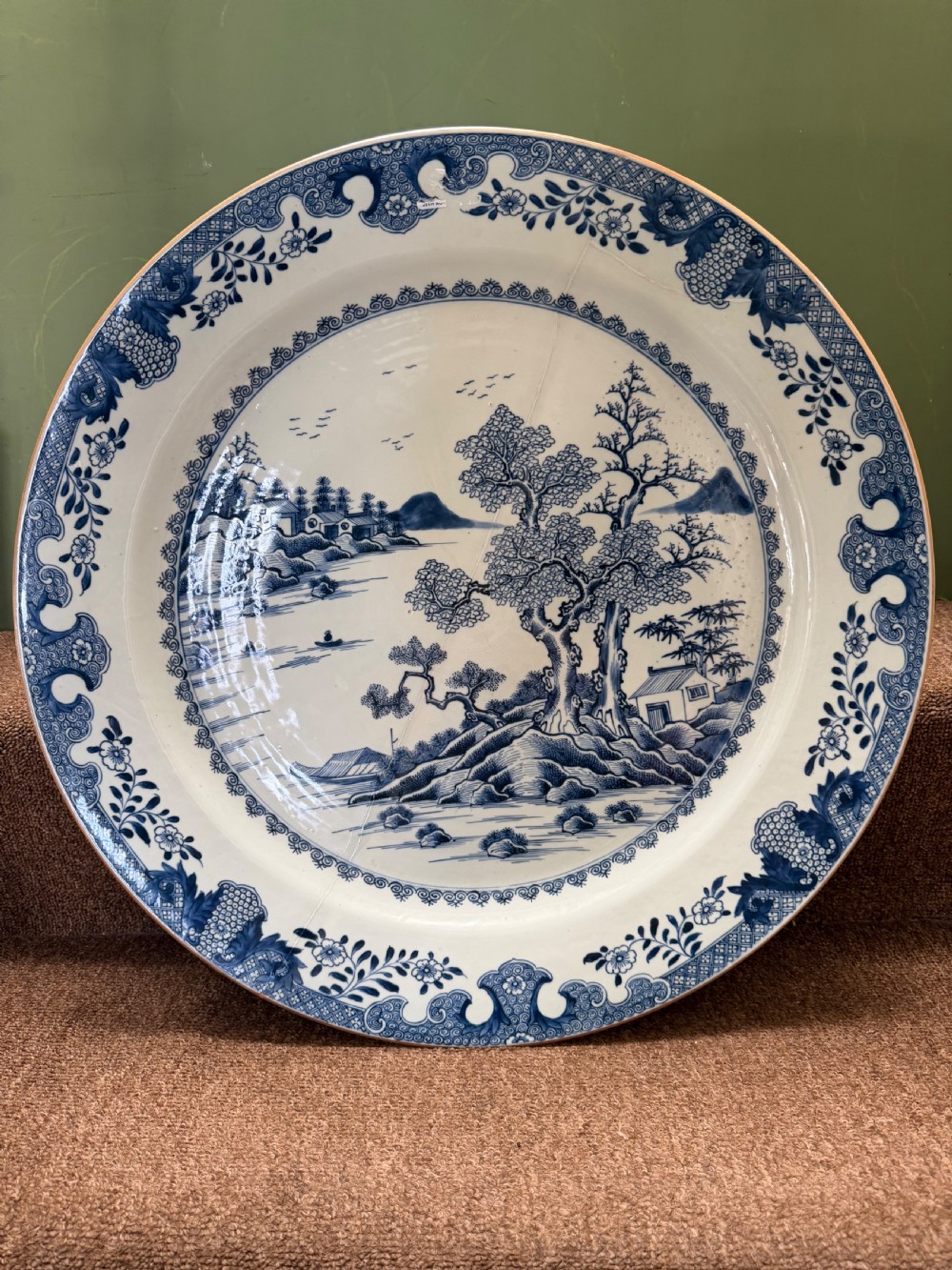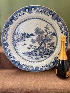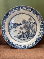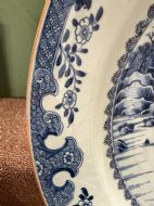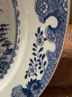 Unusually large late C18th Chinese export porcelain blue-and-white decorated dished charger.