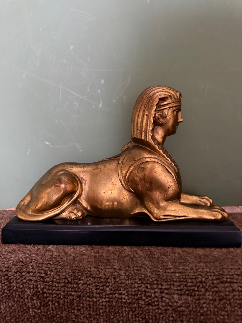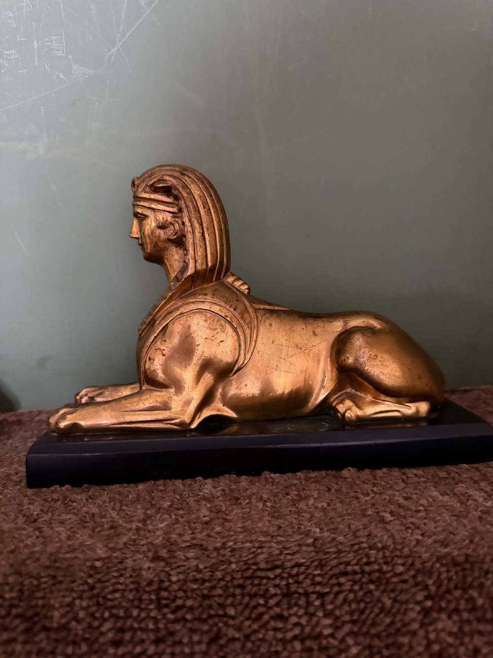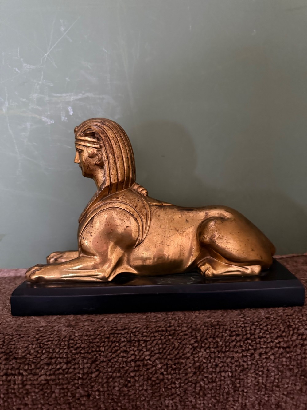 * a pair of similar scale , Louis-Phillipe period patinated bronze Sphinxes sold Christie’s London 12/04/2018 ‘Property from a David Hicks’ Interior’ Lot no. 256 £6875