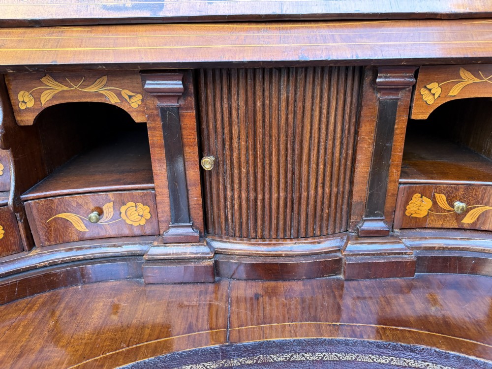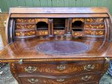 Late C18th Dutch floral marquetry inlaid walnut cylinder bureau .