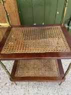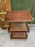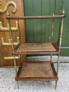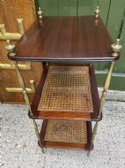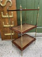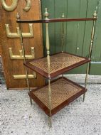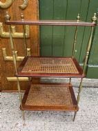 Late C19th / early C20th mahogany , cane and brass three-tier etagere .