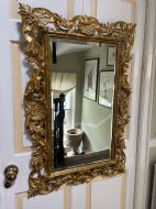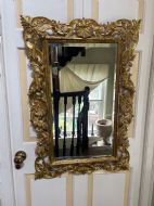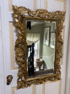 Smart rectangular carved and pierced Florentine design gilt-wood ‘cushion’ framed mirror. Typical Florentine pattern with leaf and scroll carving and central shells to the friezes .