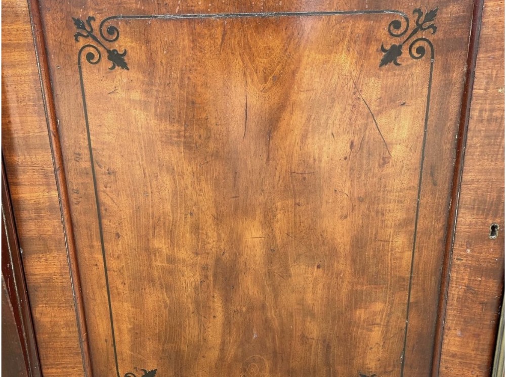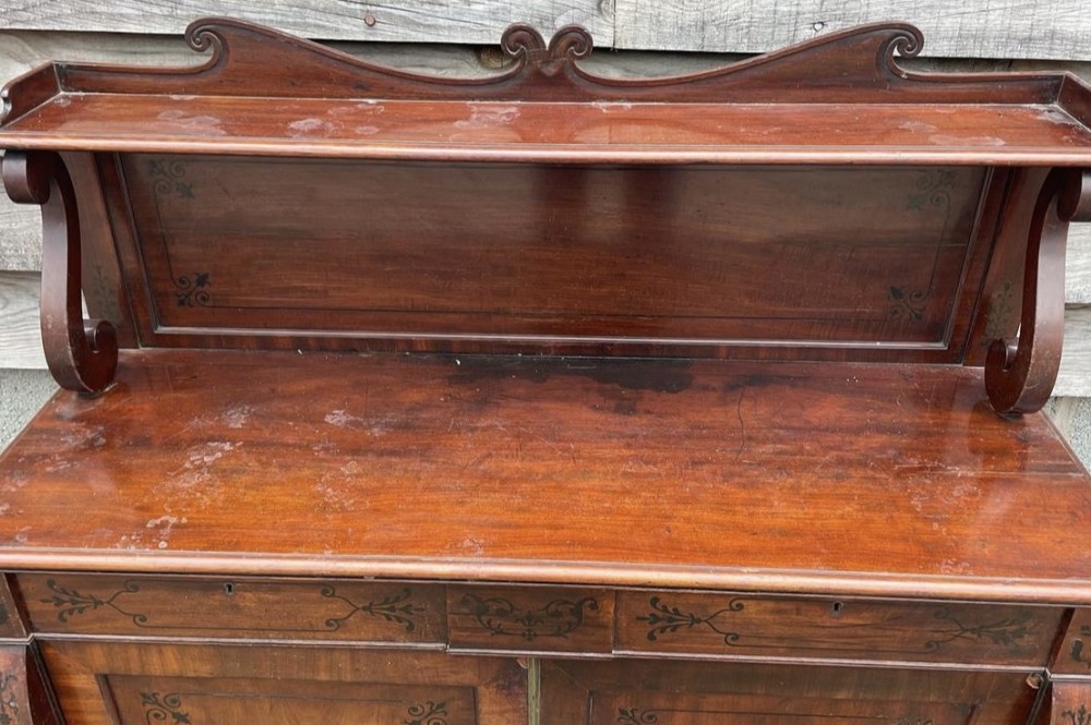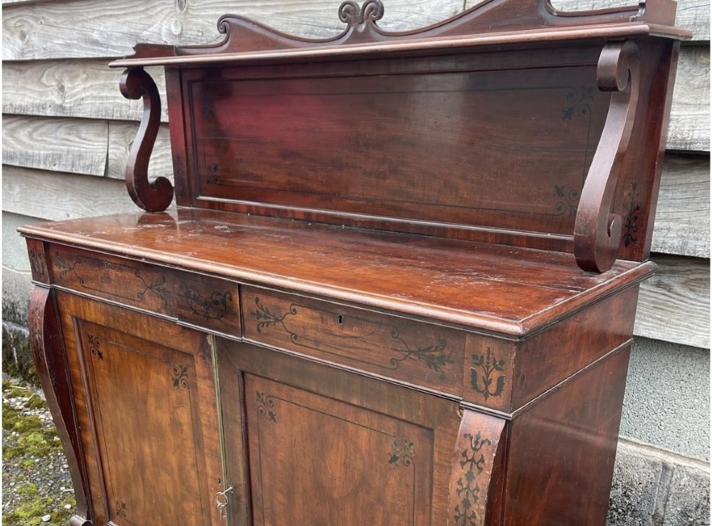 Early C19th Regency period mahogany chiffonier with decorative ebony inlay.