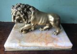 C19th gilt bronze ‘Grand Tour’ souvenir desk ornament or ‘presse-papiers ’ of the “Medici Lion” on an onyx marble base.