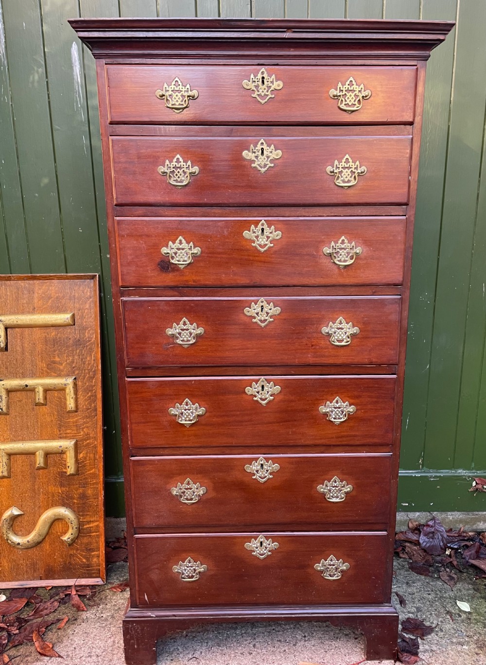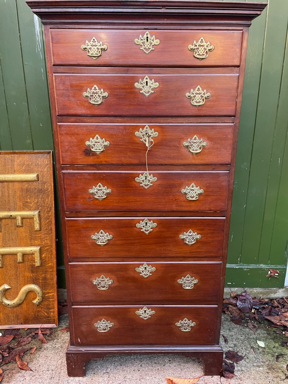 Mid C18th Irish George III mahogany ‘tall-boy’ chest of seven drawers.