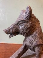 Well carved Prato Verde marble study of the iconic Florentine boar, mounted on an integral naturalistically carved rectangular base .