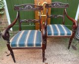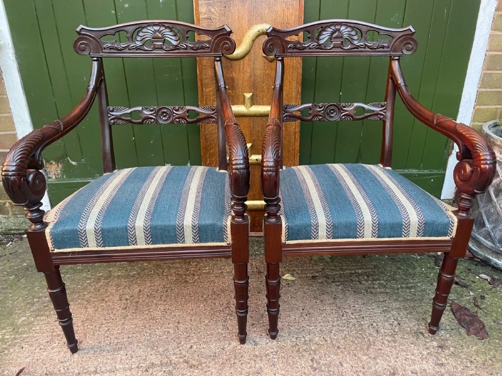 Fine pair of early C19th carved mahogany Northern Italian Piedmontese salon armchairs attributed to Henry Thomas Peters of Genoa.