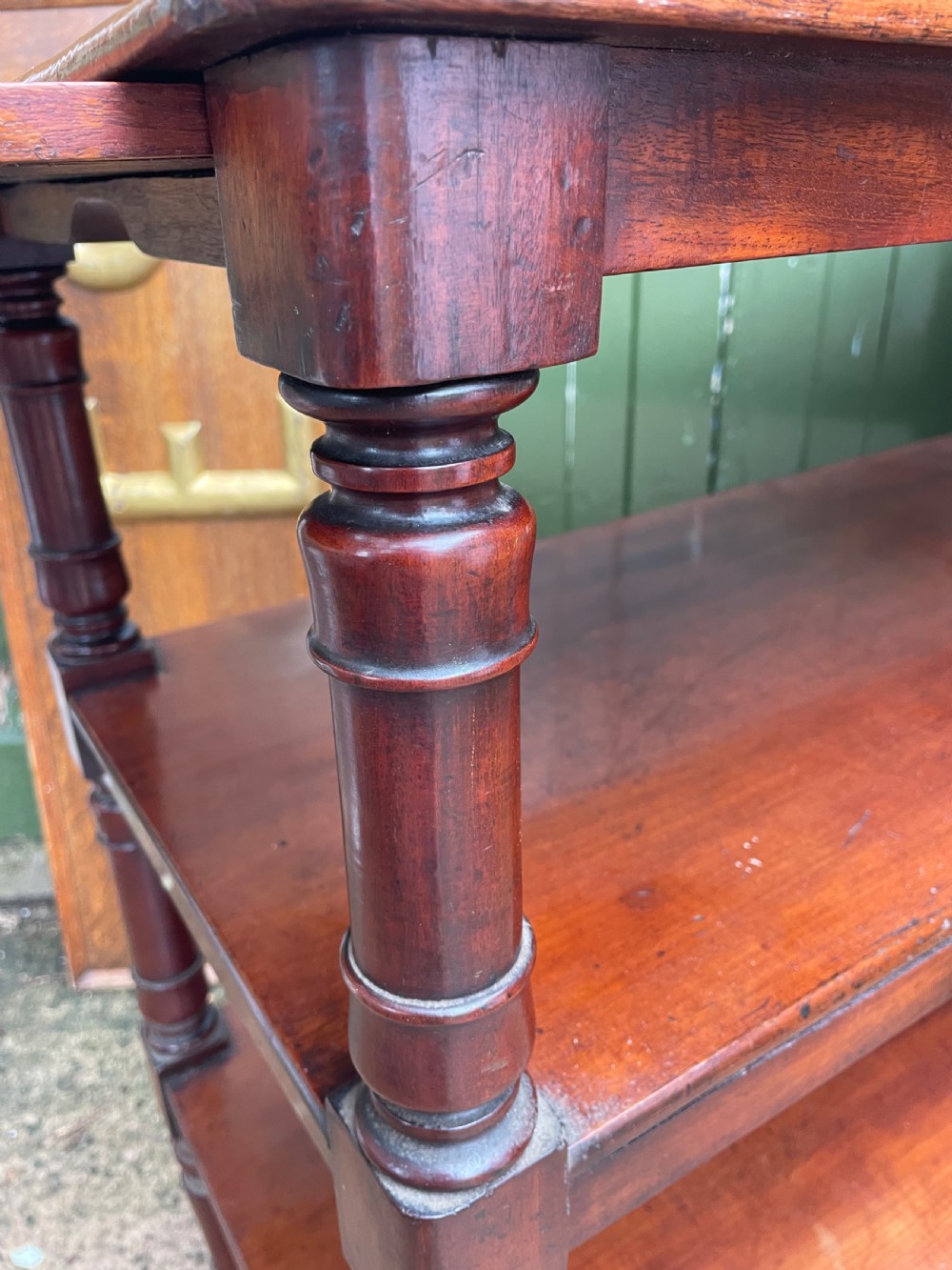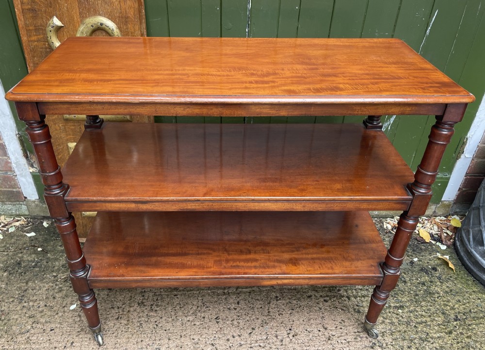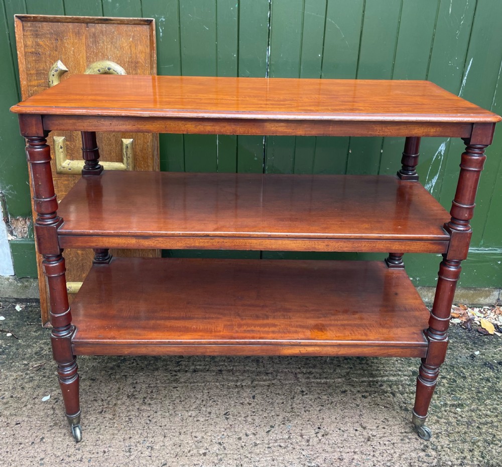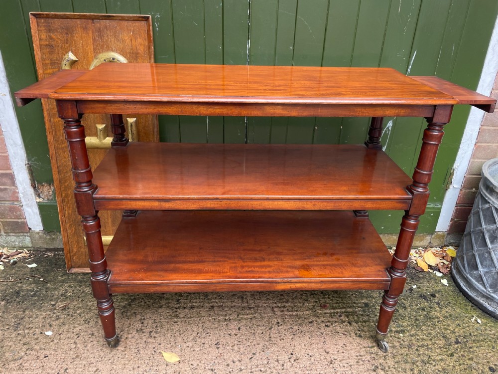 Early C19th George Iv mahogany 3-tier buffet or serving table of unusual format .