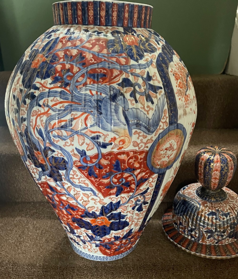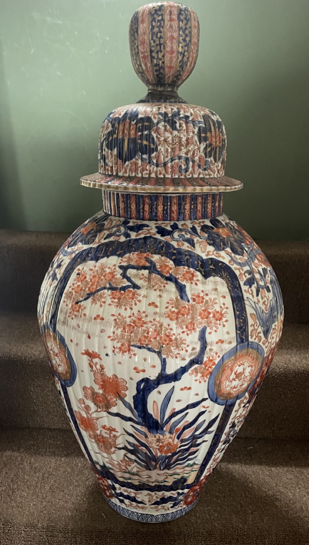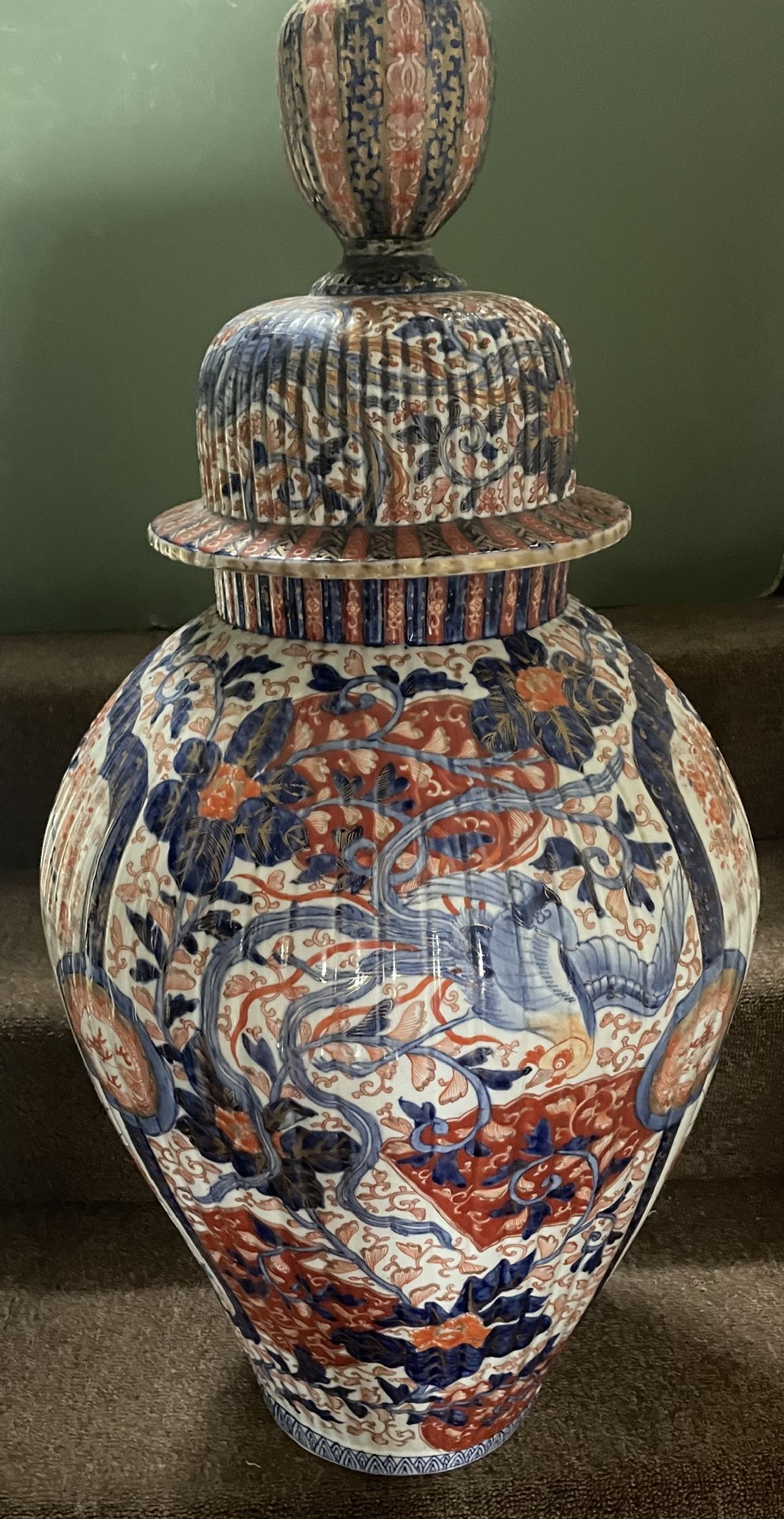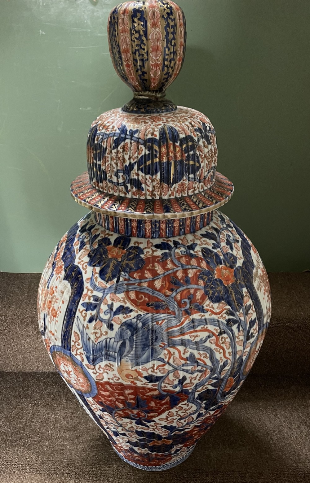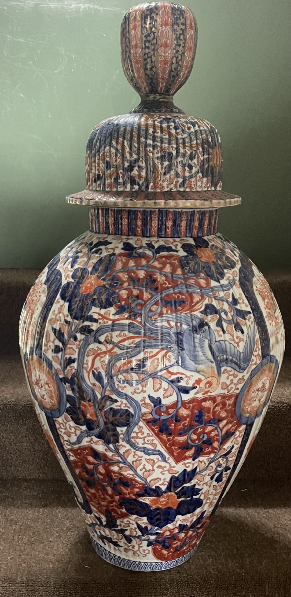 A highly decorative Japanese vase of impressive scale and proportions. The vase in excellent original condition, the finial of the lid having been historically broken and repaired.