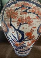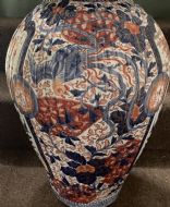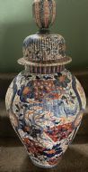 Large mid C19th Japanese Meiji period porcelain vase and cover decorated in the Imari palette.