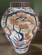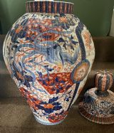 Large mid C19th Japanese Meiji period porcelain vase and cover decorated in the Imari palette .