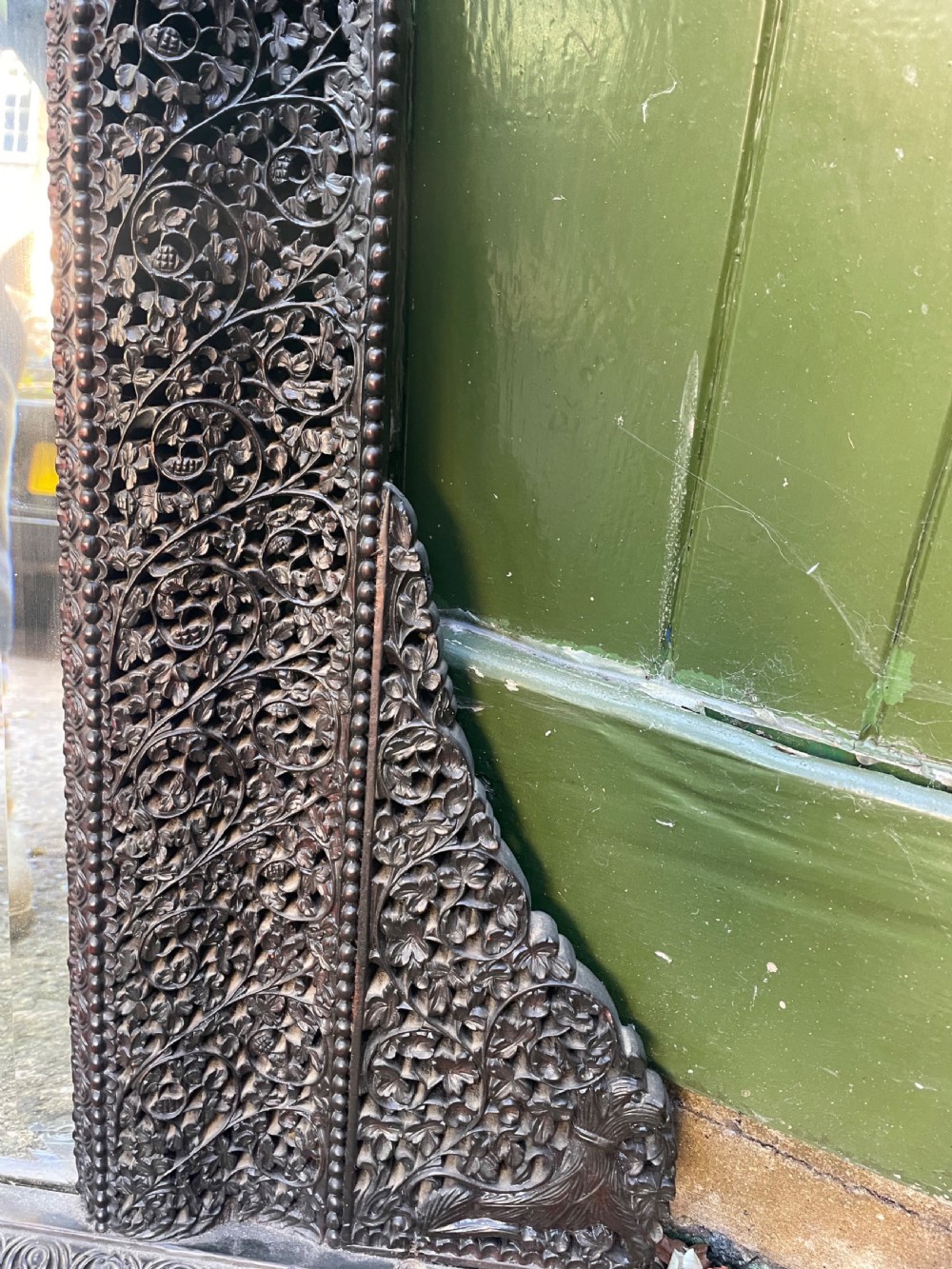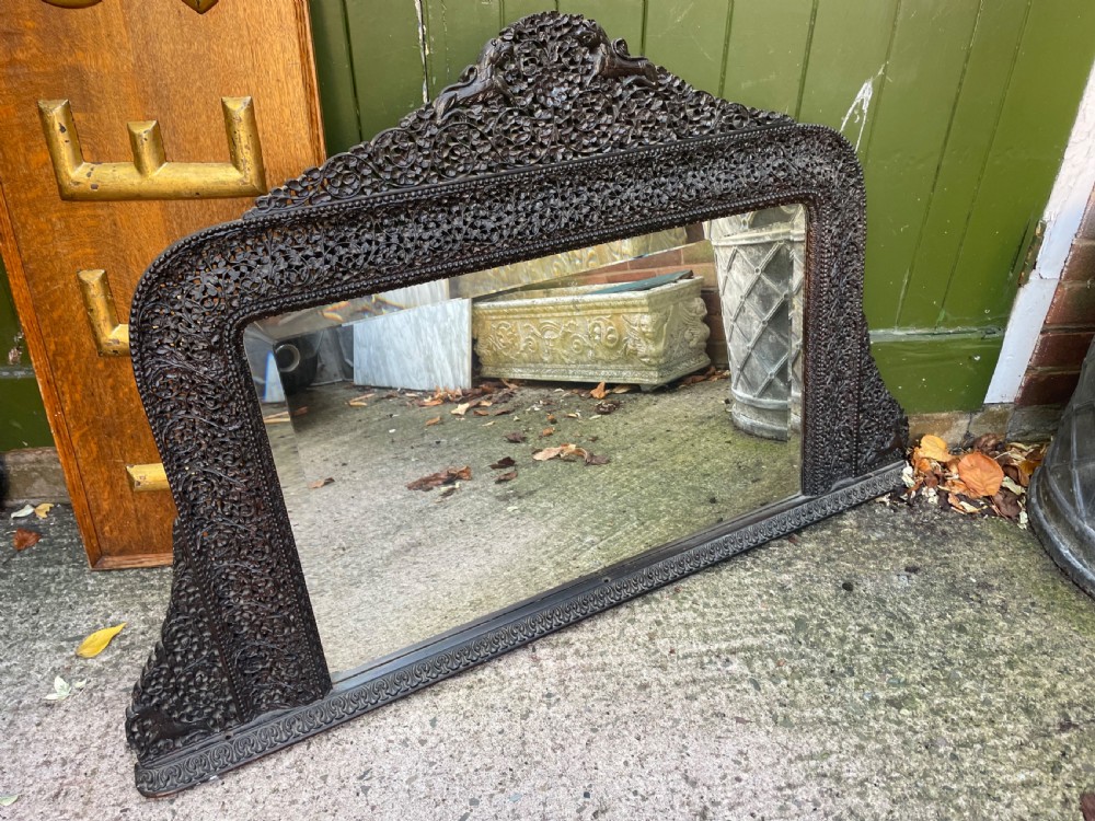 C19th carved Indian or Burmese ‘backwood’ framed overmantel mirror.