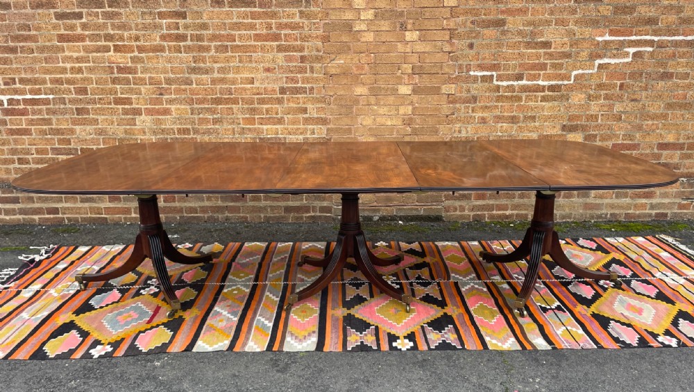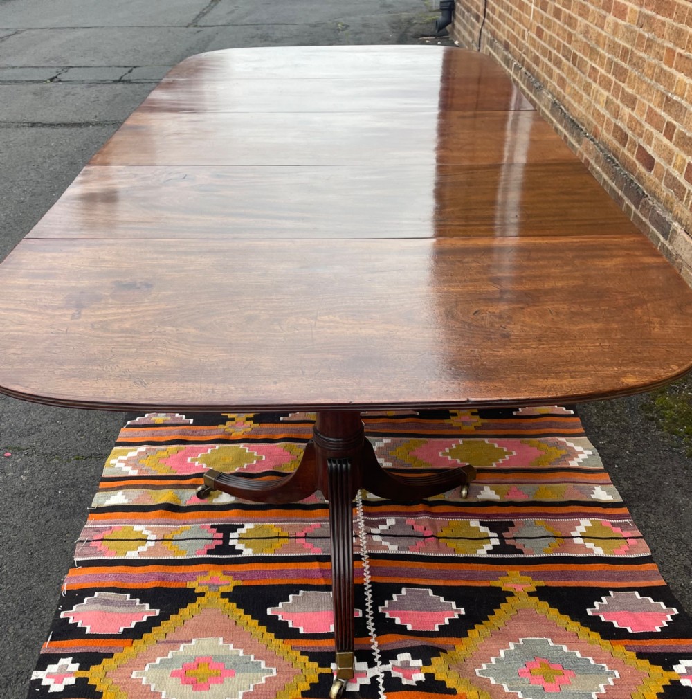Elegant early C19th George III period mahogany 3-pillar pedestal dining table of good scale and proportions.