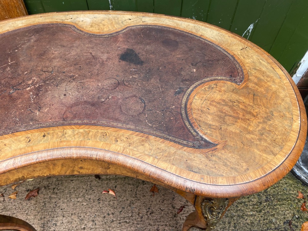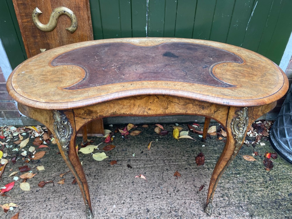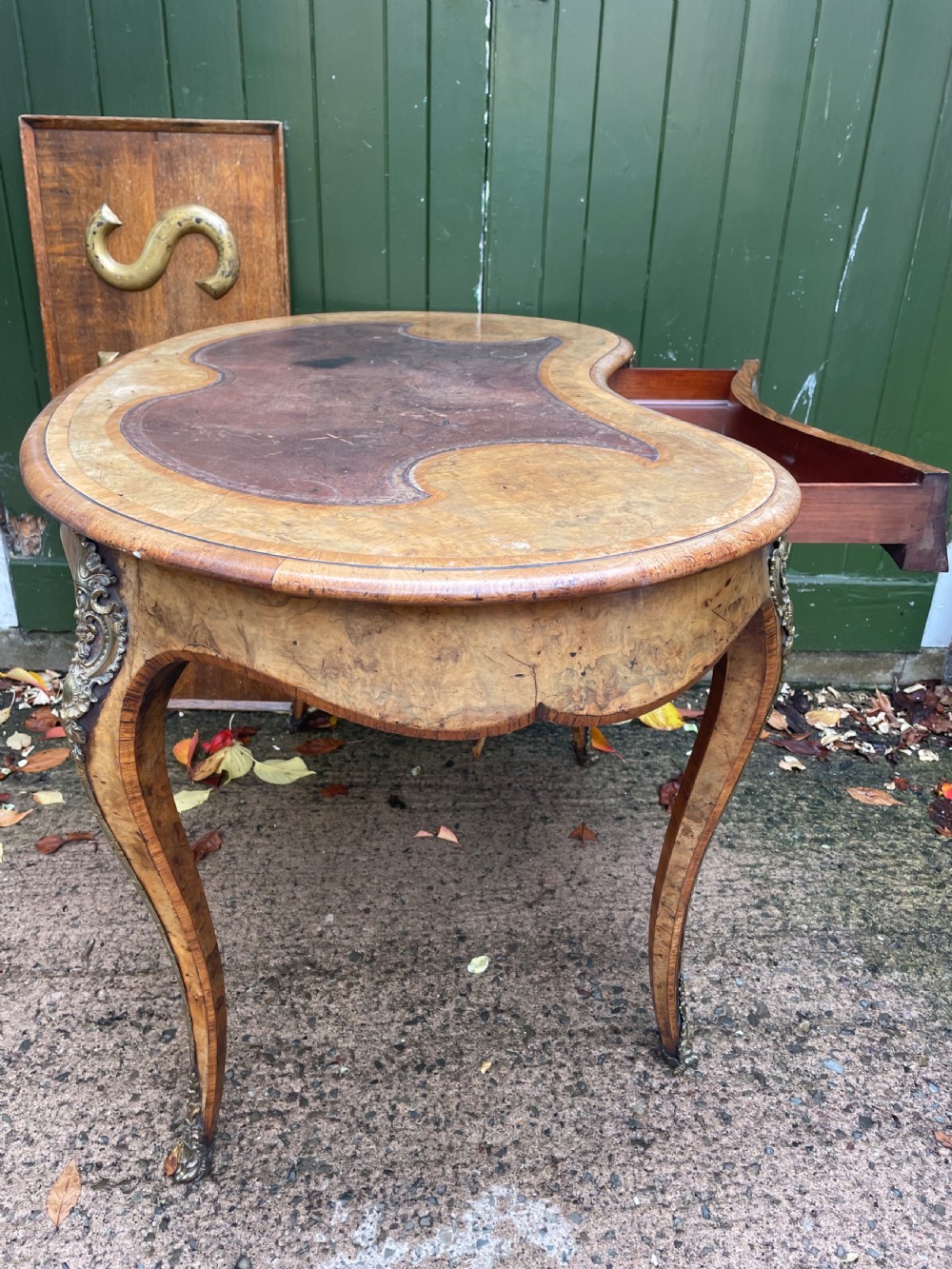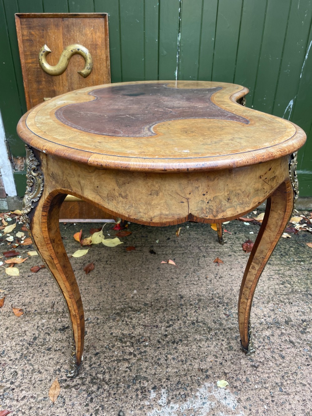 Fine quality mid C19th ormolu-mounted burr and figured walnut kidney-shaped writing table or ‘bureau-plat’.