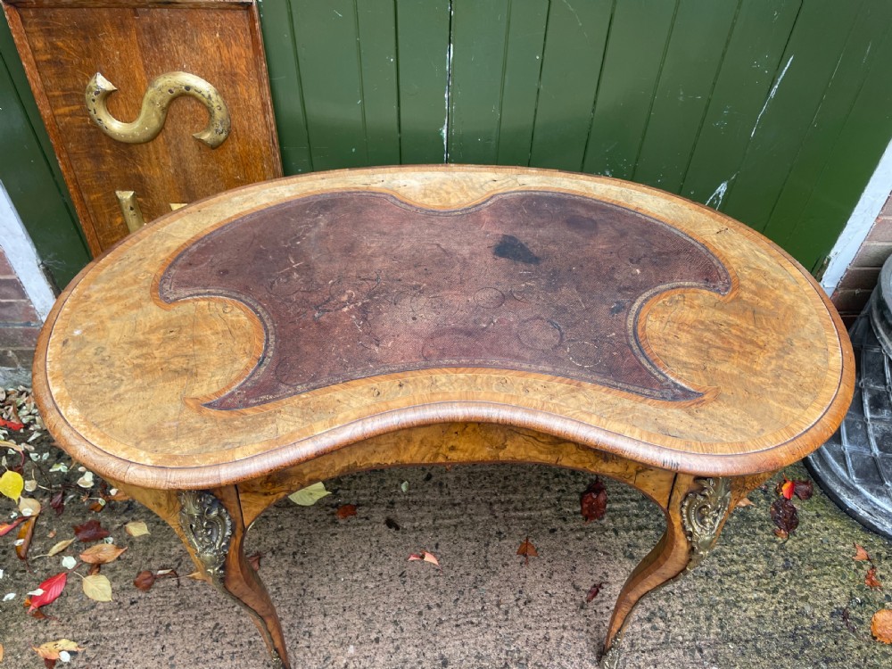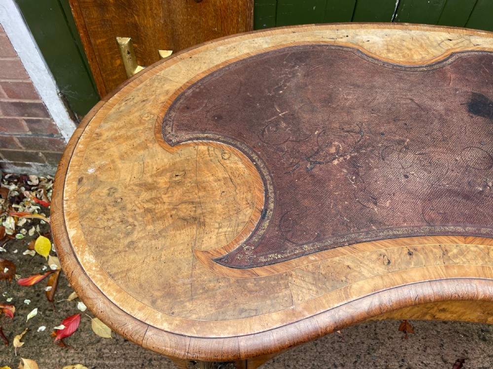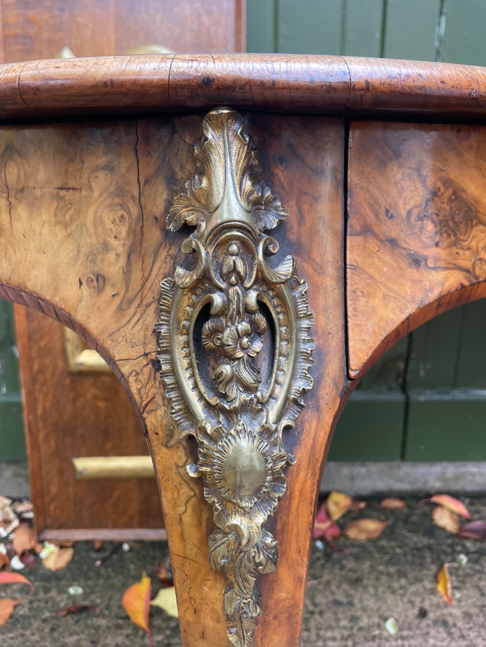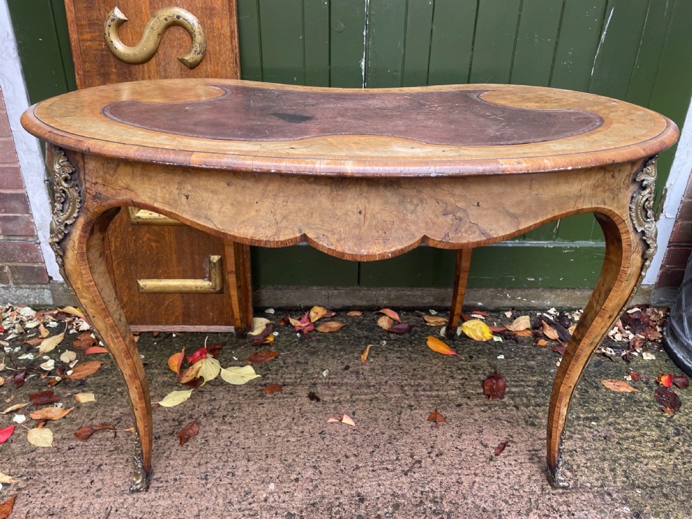 Fine quality mid C19th ormolu-mounted burr and figured walnut kidney-shaped writing table or ‘bureau-plat’.
