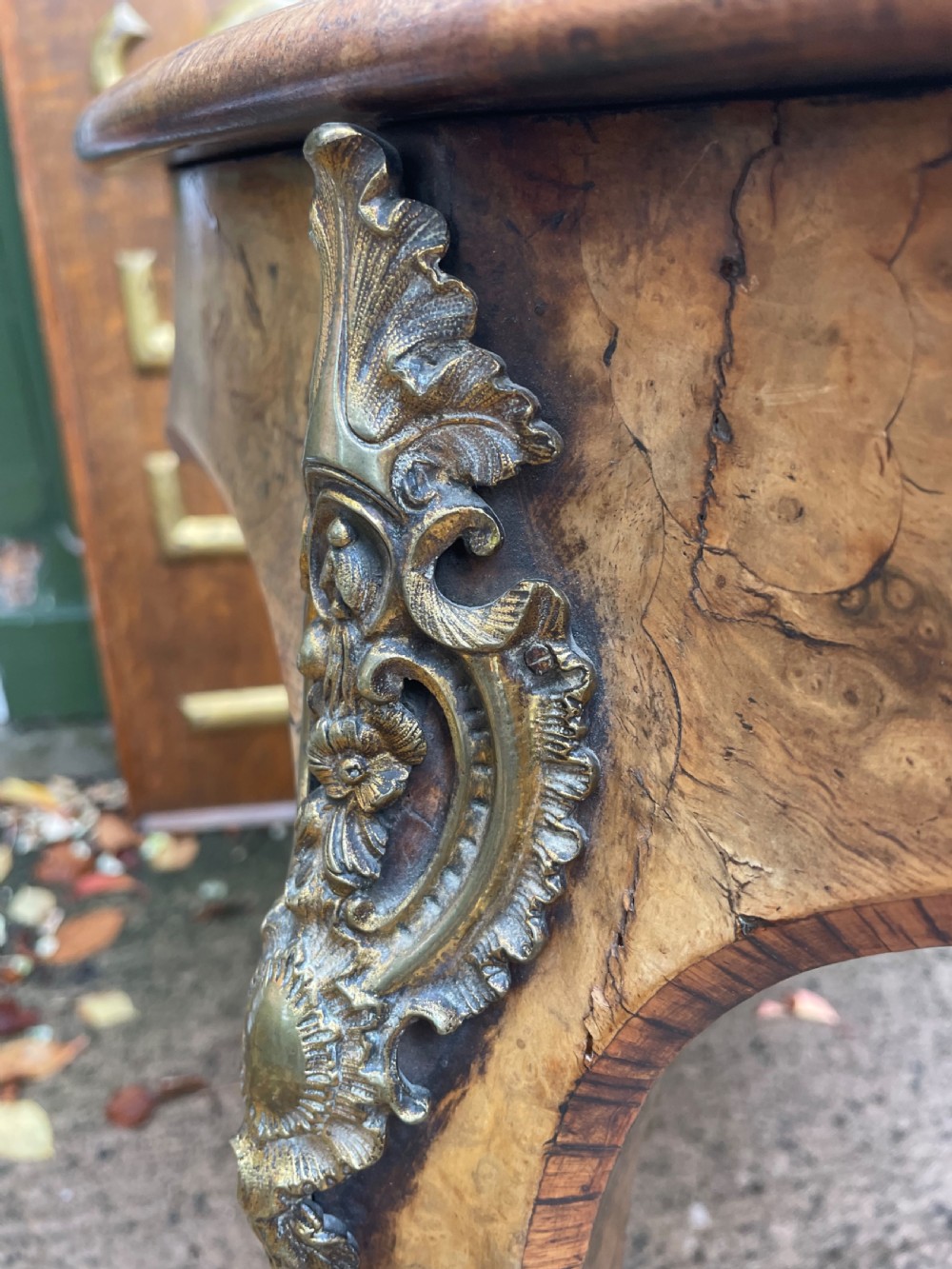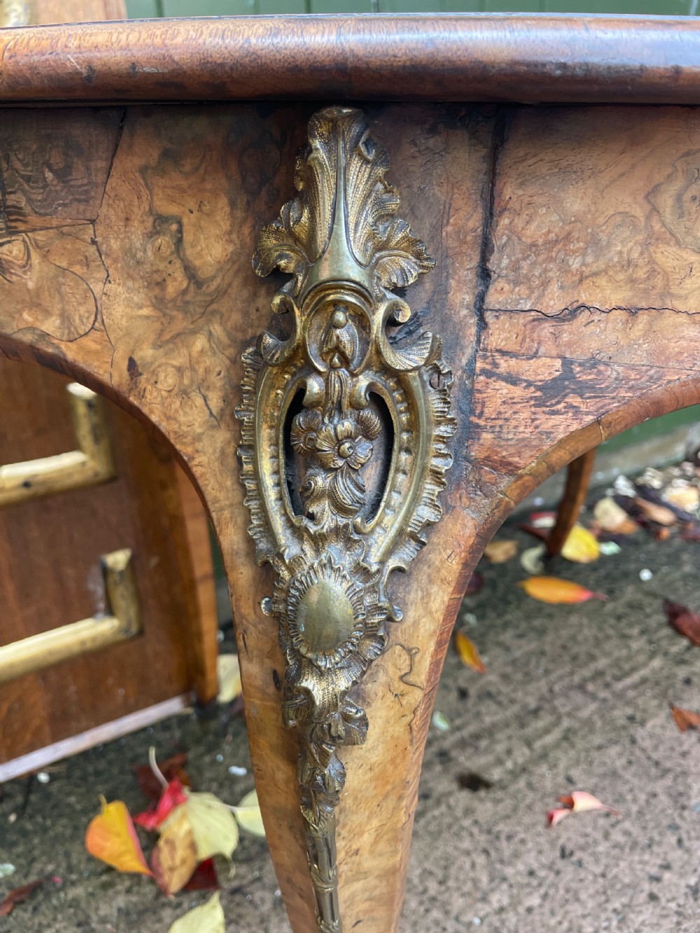 Fine quality mid C19th ormolu-mounted burr and figured walnut kidney-shaped writing table or ‘bureau-plat’
