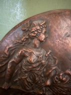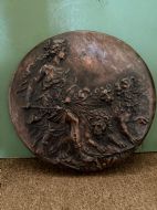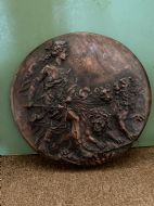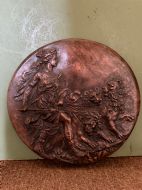 Late C19th classical style ‘electrotype’ repousse high-relief patinated copper circular roundel or tondo .