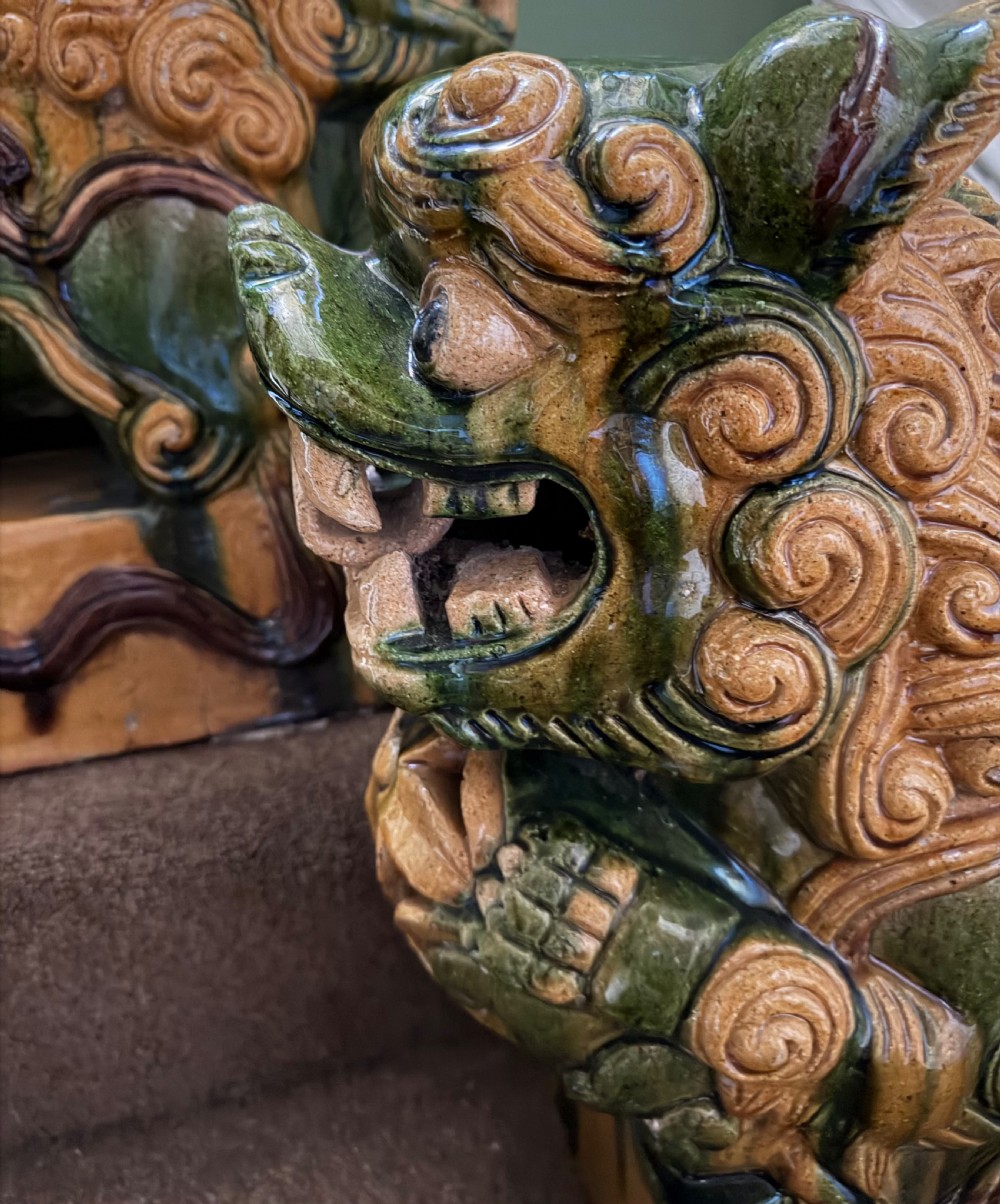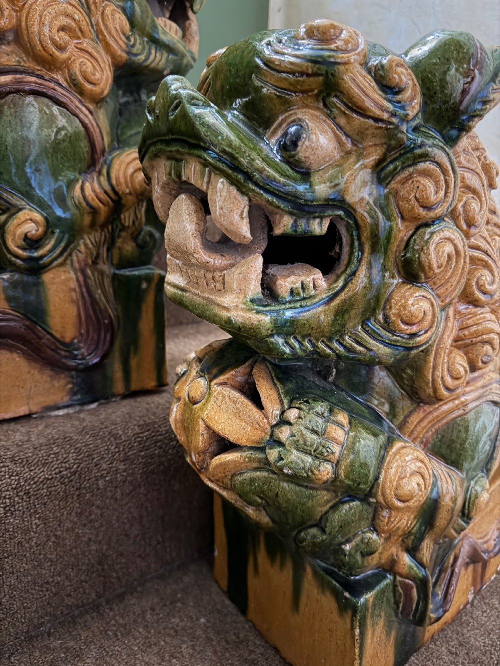 pair of largescale decorative early c20th chinese sancai glazed pottery foo dogs