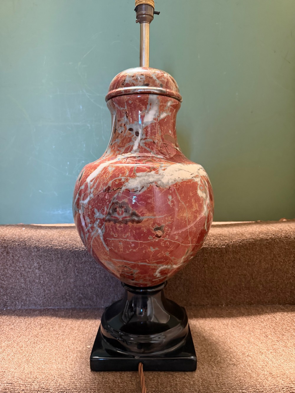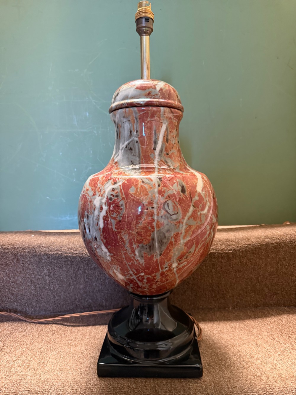 Large scale decorative mid C20th ‘faux marble’ porcelain baluster lamp .