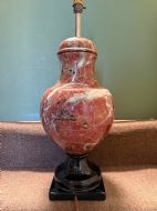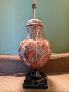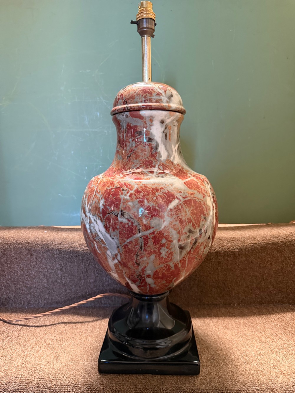 Large scale decorative mid C20th ‘faux marble’ porcelain baluster lamp.