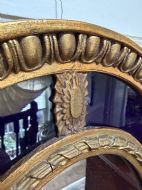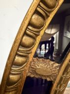 Decorative early C20th blue border glass oval gilt-wood framed mirror in the late C18th style .