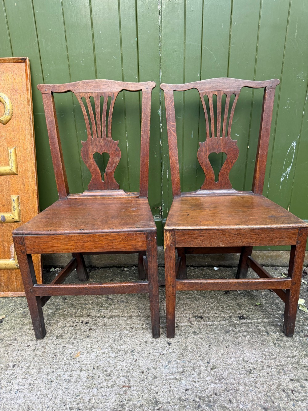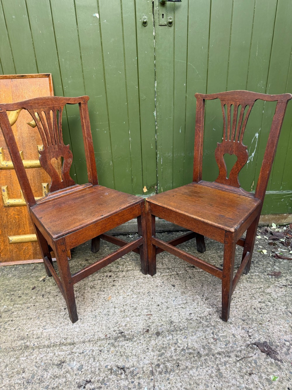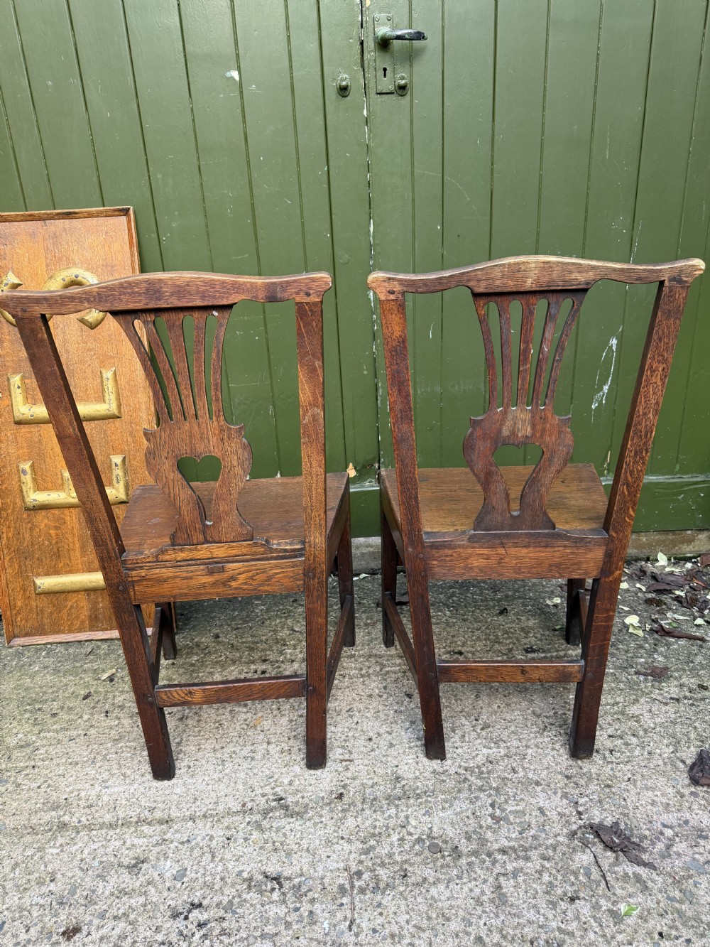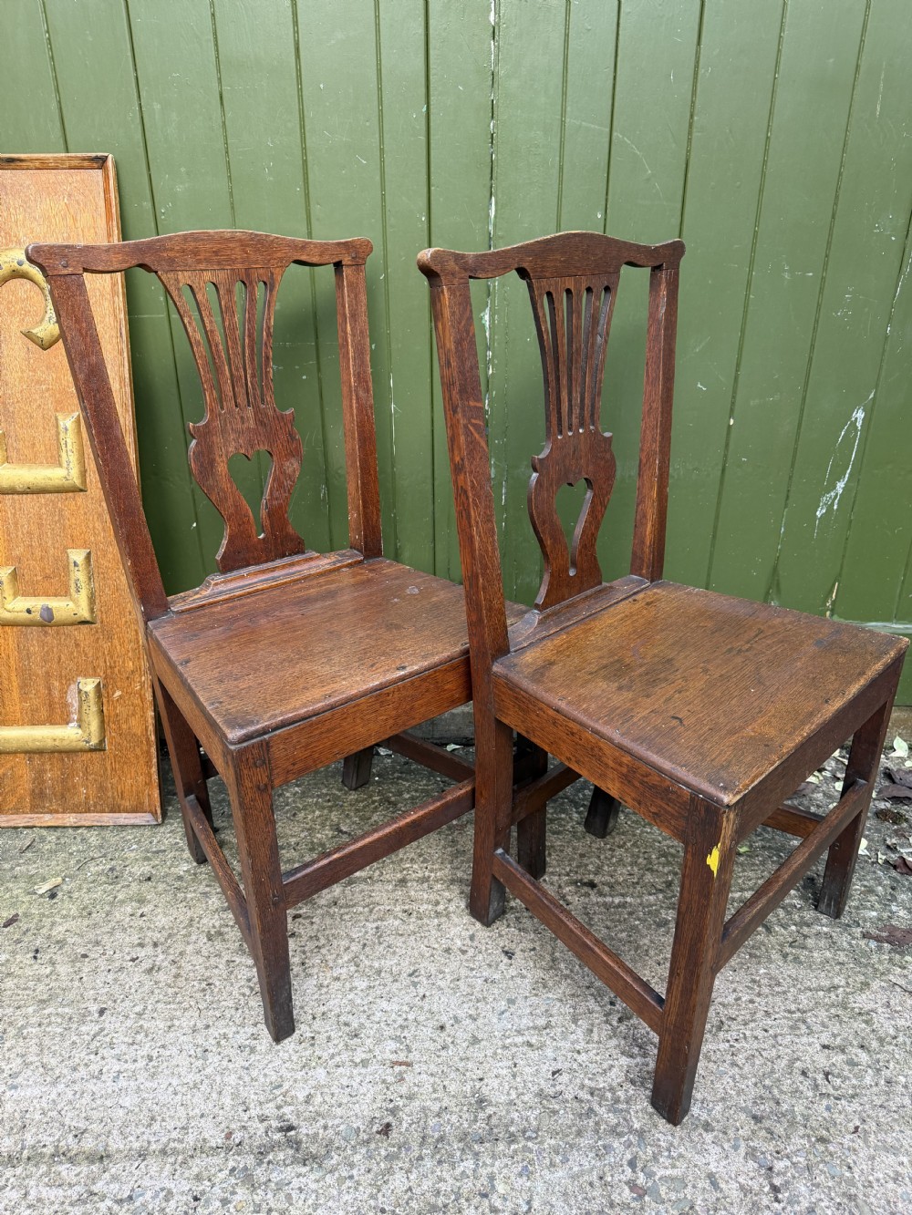 pair of c18th george iii period oak vernacular or countrymade side or kitchen chairs