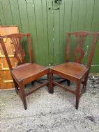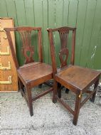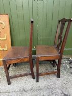 Pair of C18th George III period oak vernacular or country-made side or kitchen chairs .