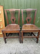 Pair of C18th George III period oak vernacular or country-made side or kitchen chairs.