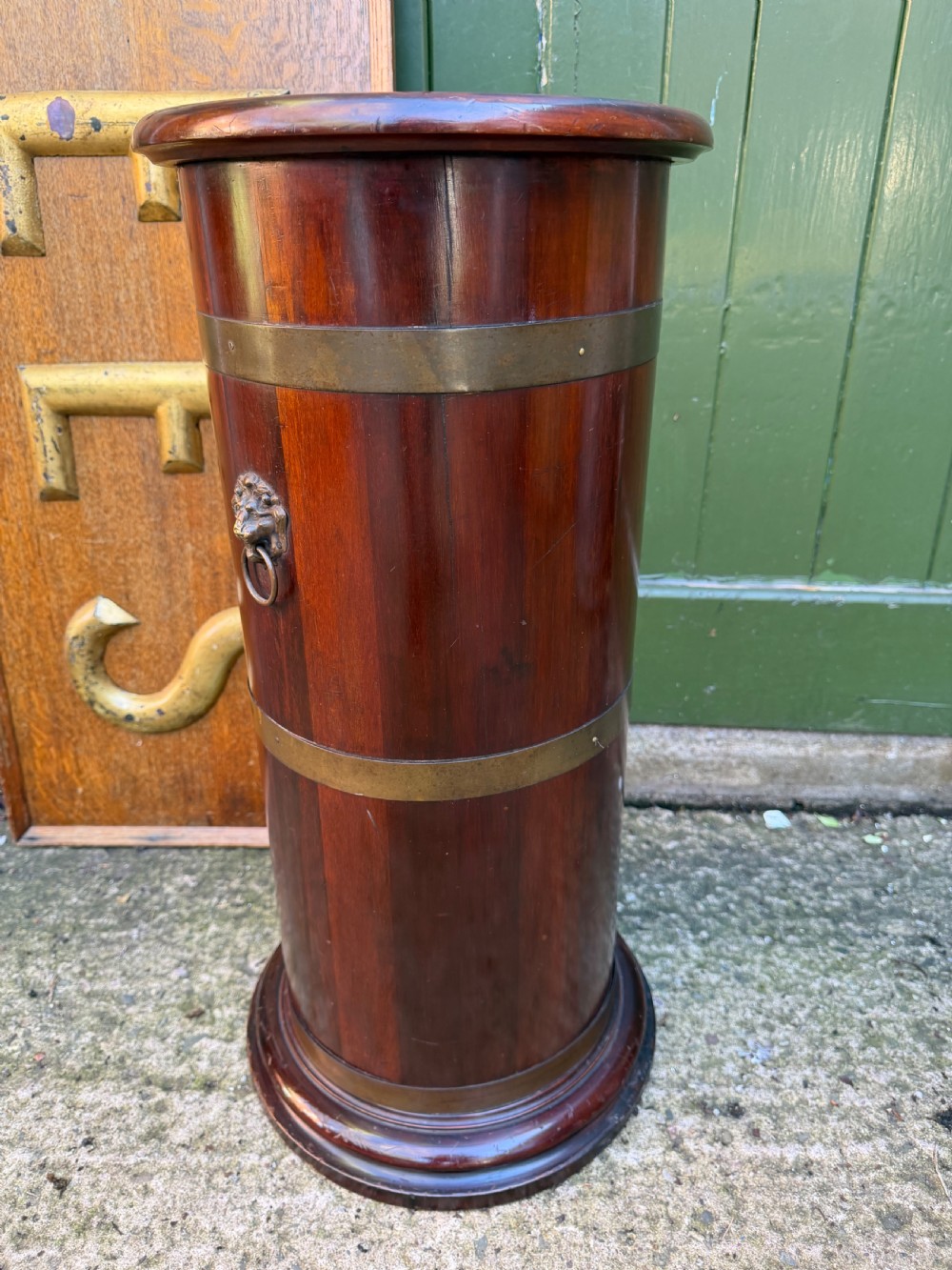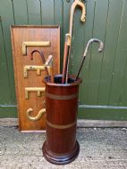 Mid C19th brass-bound mahogany cylindrical stick and umbrella stand .
