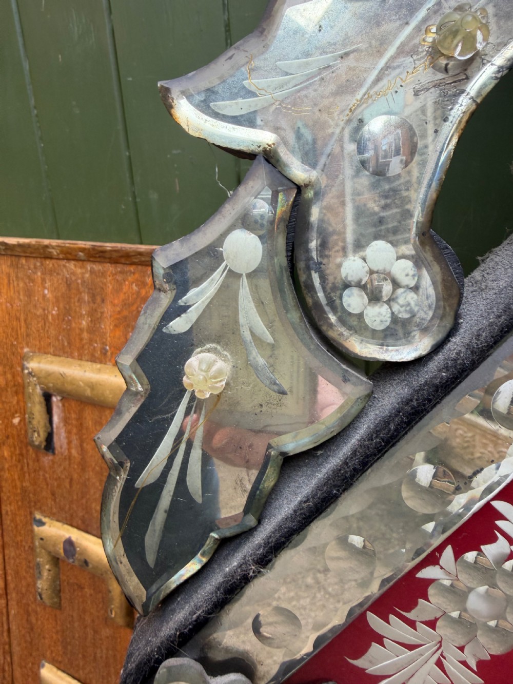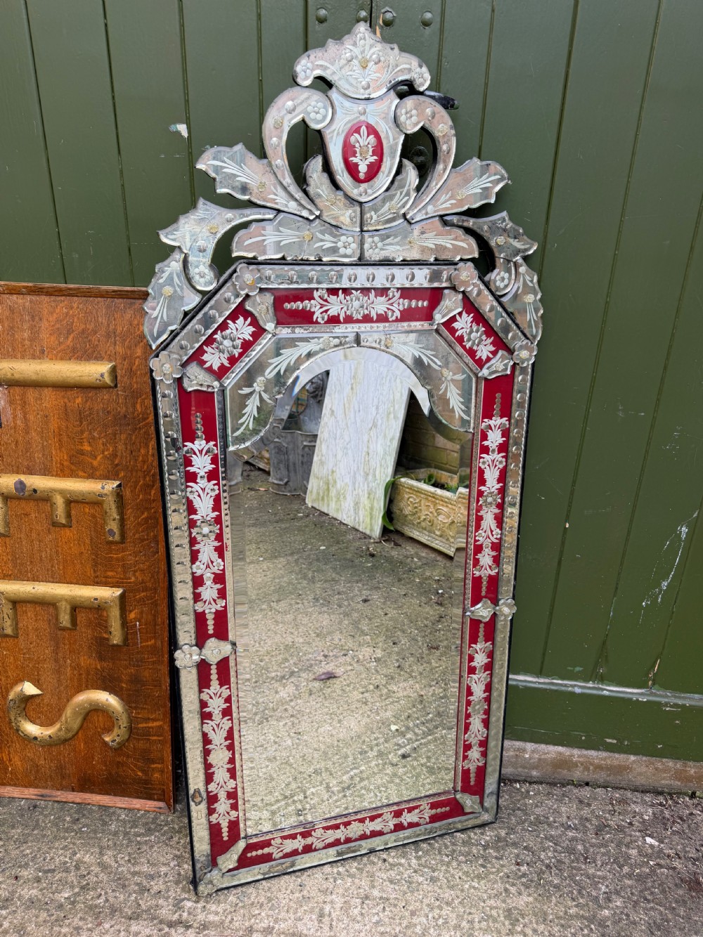 Late C19th / early C20th Italian Venetian cut and etched glass framed mirror with a ruby red border.