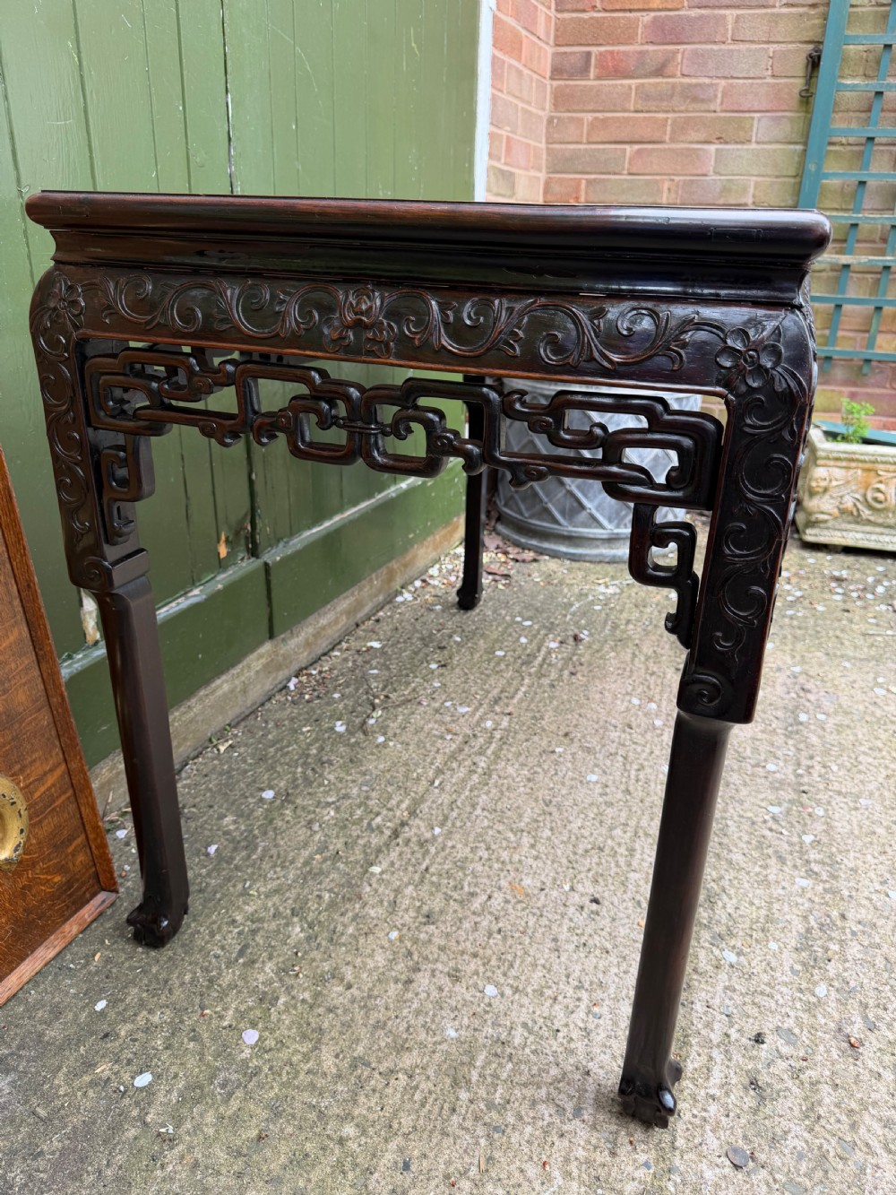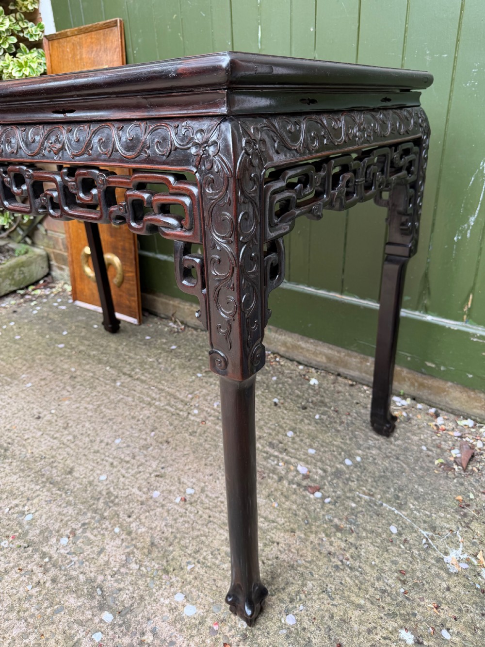 A highly decorative table of freestanding form and good scale and proportions to add an exotic oriental accent to an interior scheme.
