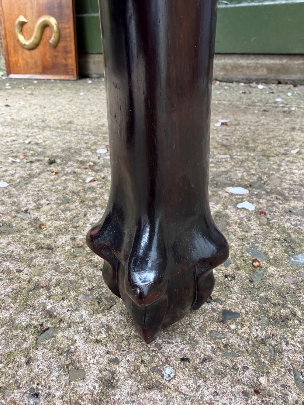 In excellent original condition, the dense hardwood has achieved a rich colour, patina and lustre to the original surface . The marble top with some minor historic scratches and fissures. The underside of the frame benefits from some extra strengthening blocks which have been added historically to provide stability, but cannot be seen viewed when the table is standing.