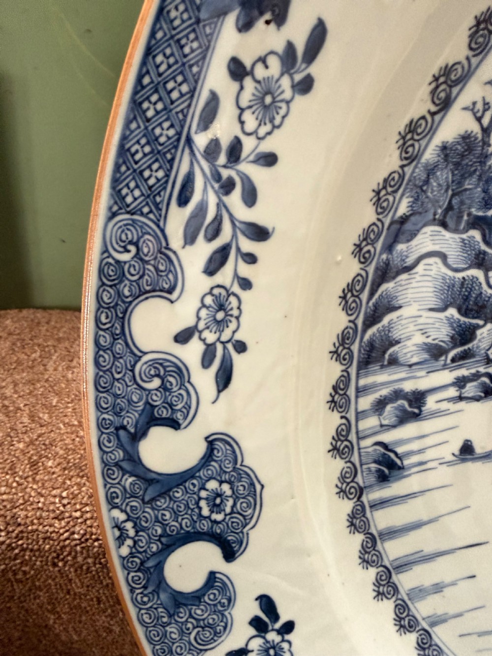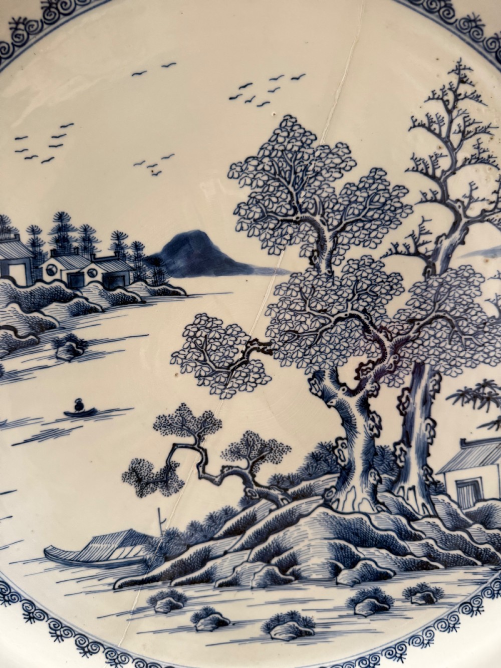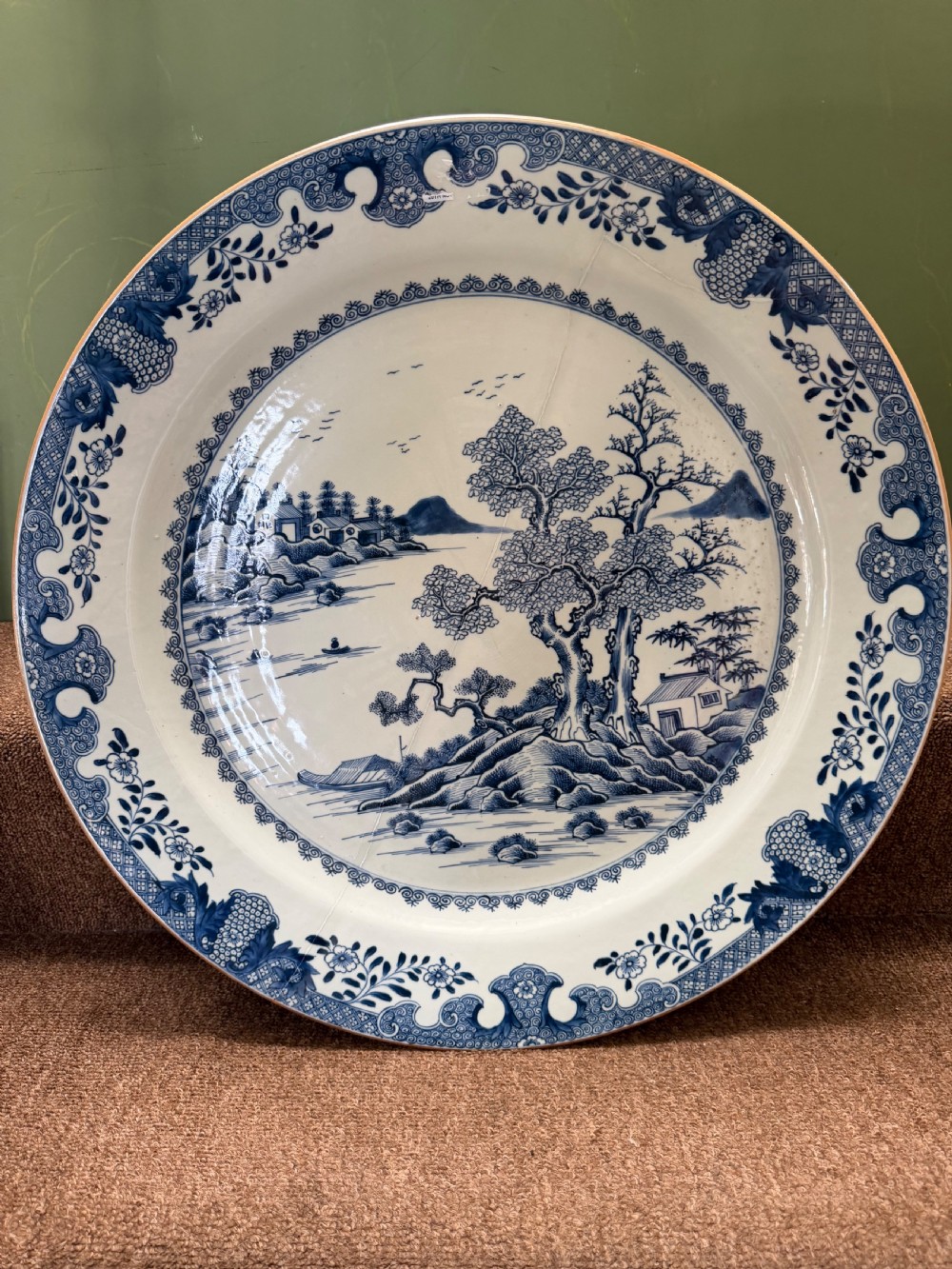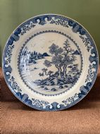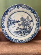 Unusually large late C18th Chinese export porcelain blue-and-white decorated dished charger.